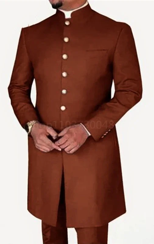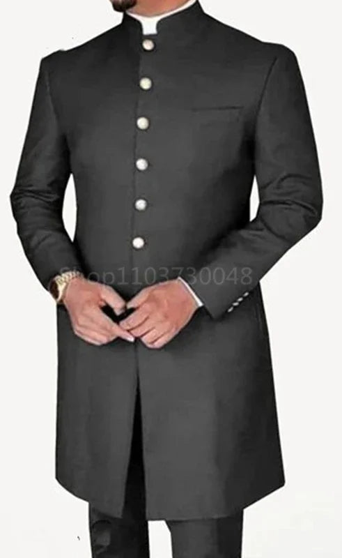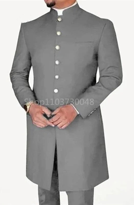 2 Pieces Fashion Style Men Suits Long Coat with Pants Smart Casual Men's Business/Wedding Suits Single Breasted Jacket Trousers