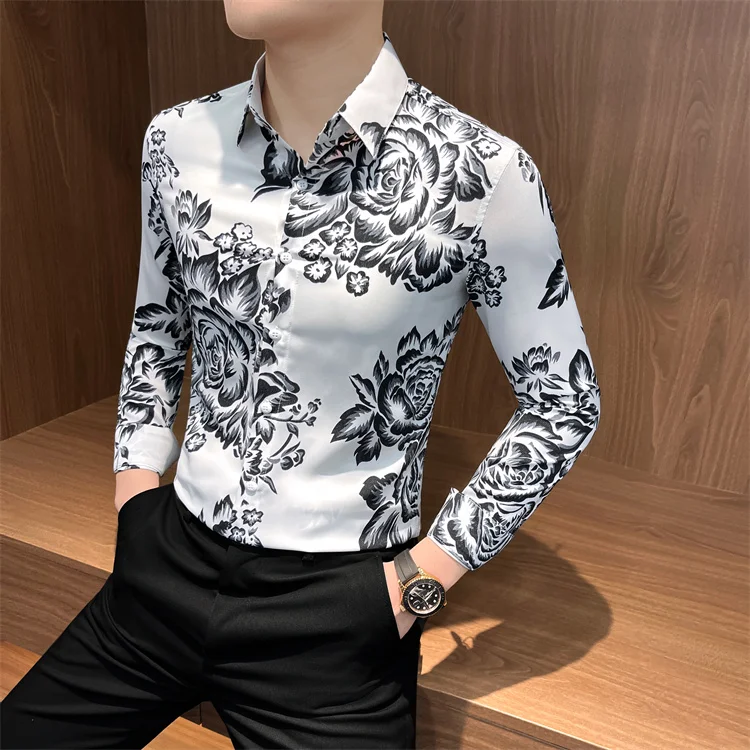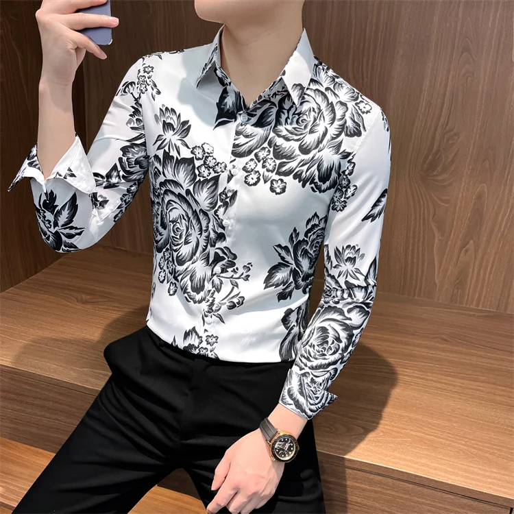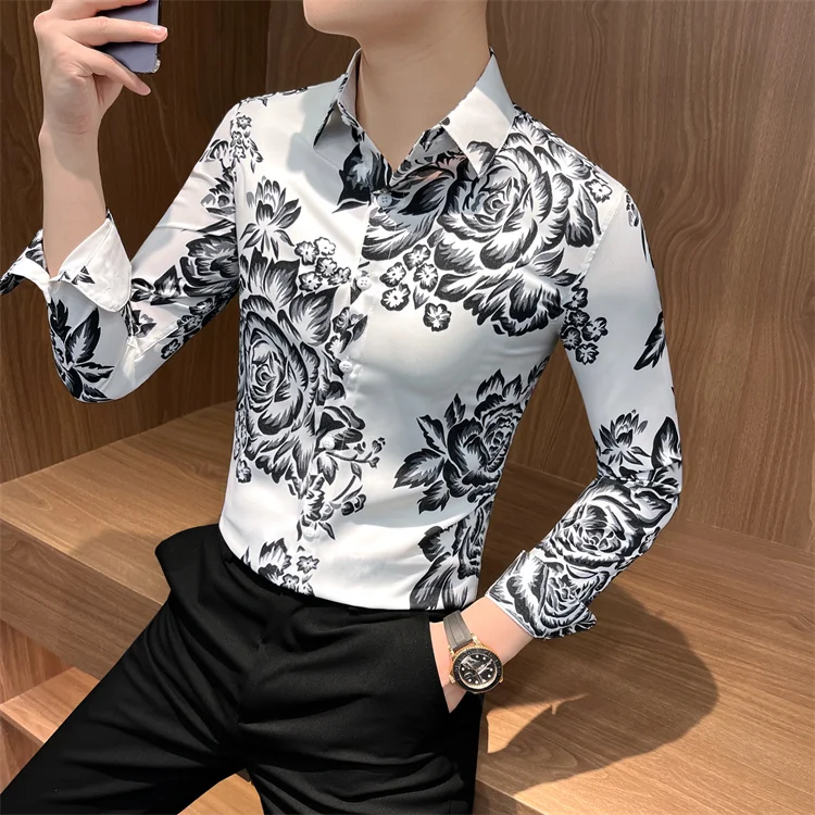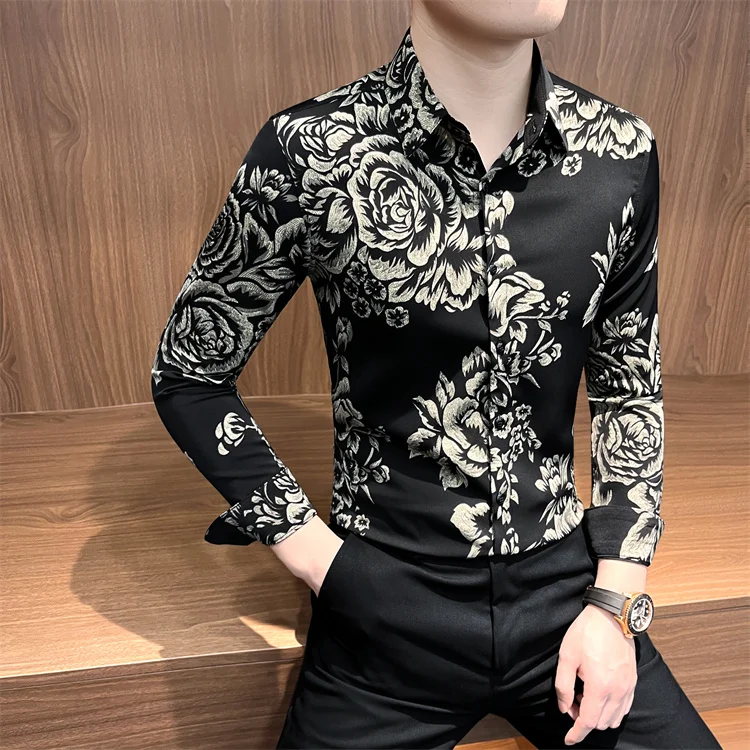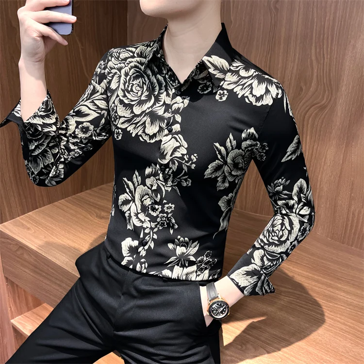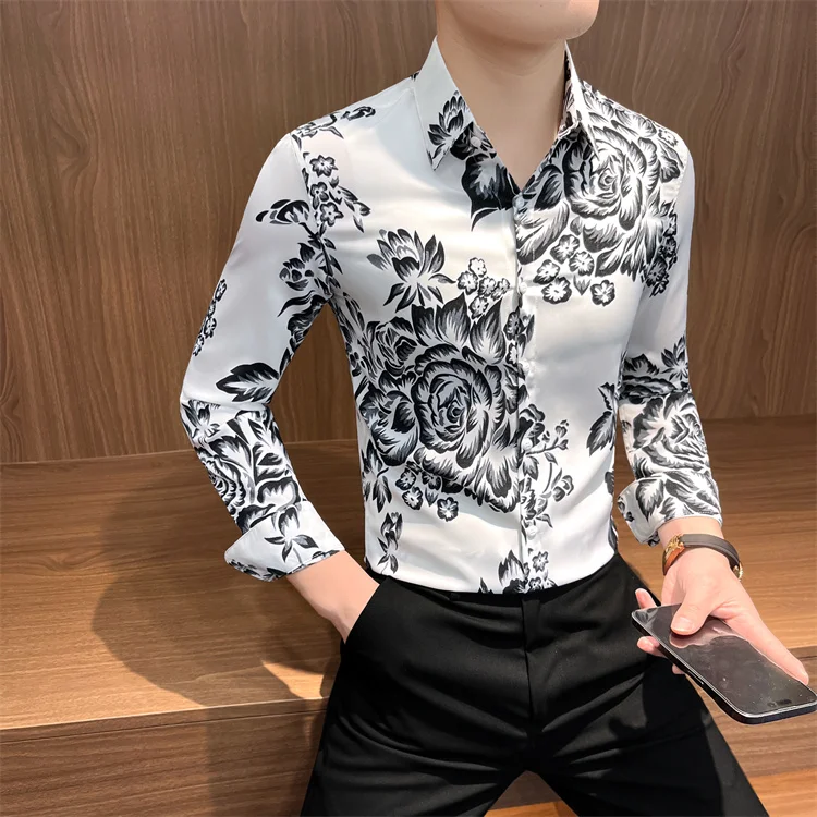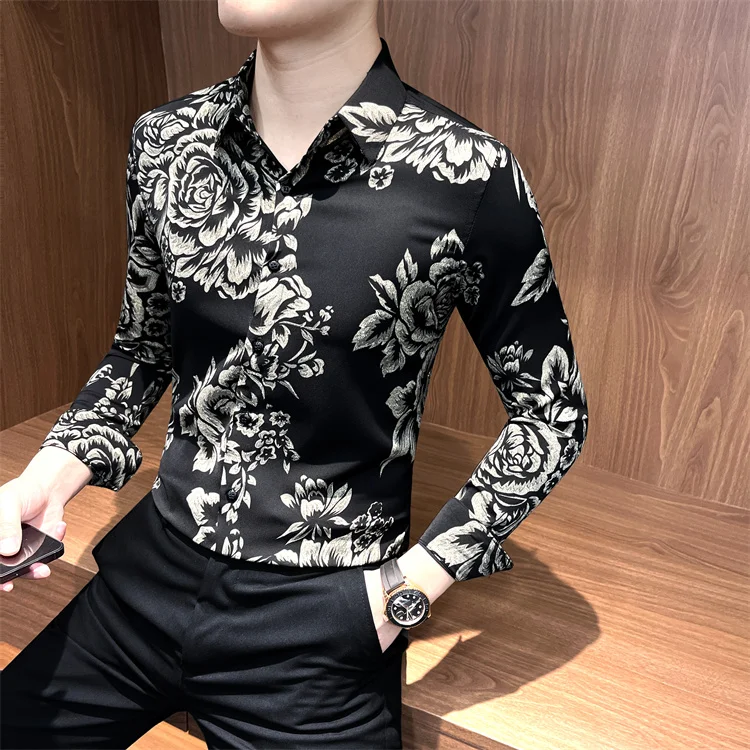 2025 New Retro Floral Shirt Men's Long Sleeved Casual Shirts Trendy Men's Clothing High-end Office Social Daily Business Shirt
