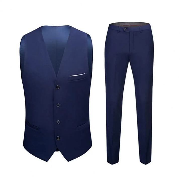 1 Set Blazer Vest Pants Set Solid Color Turndown Collar Single Breasted Slim Fit Formal Suit for Wedding Banquet Prom