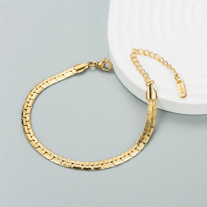 316L stainless steel new fashion high jewelry woven flat chain geometric women's bracelet gift