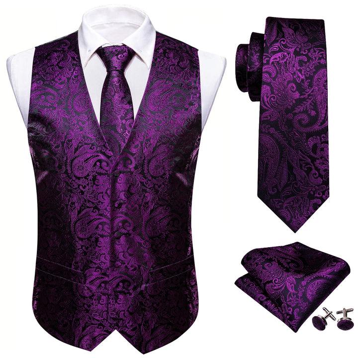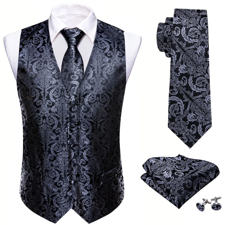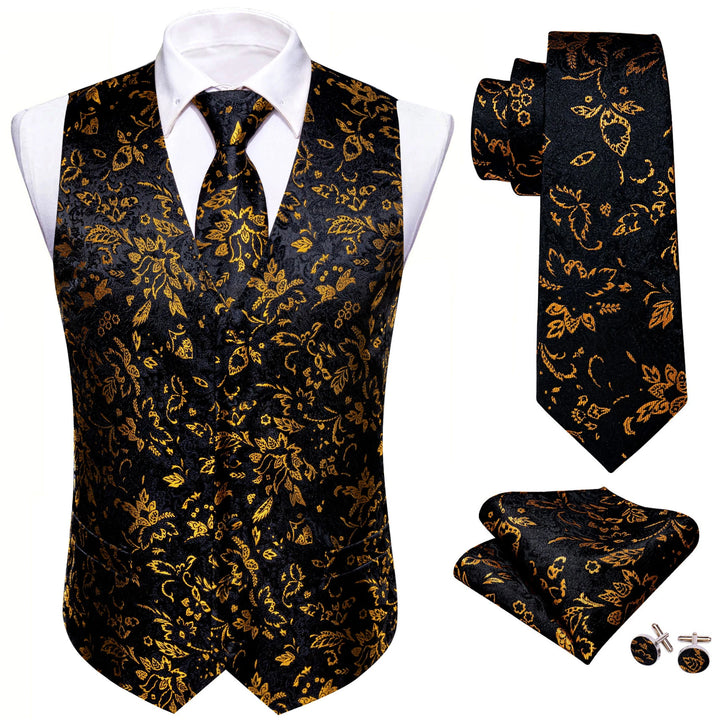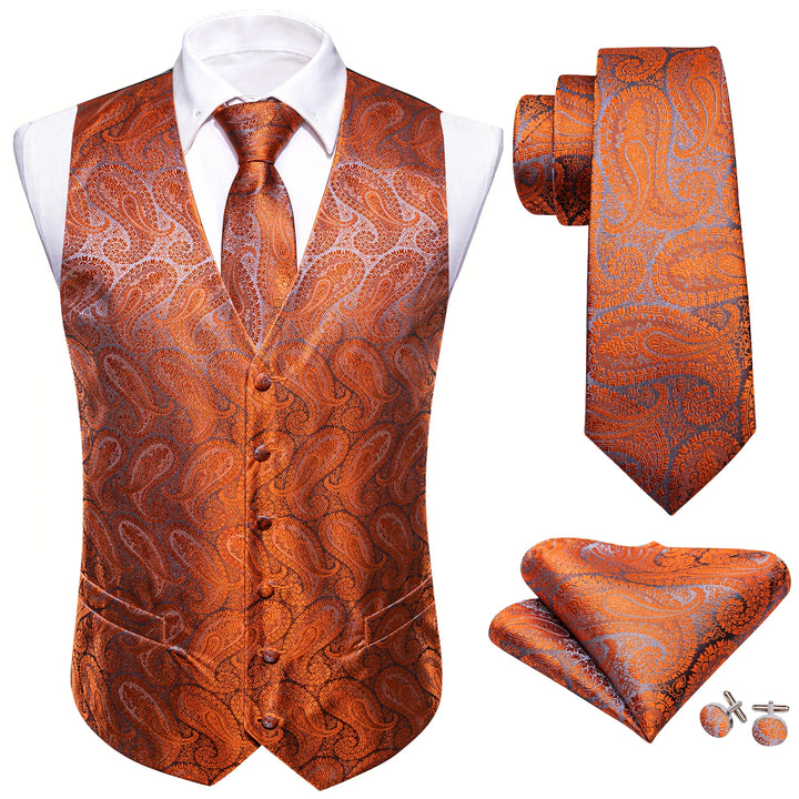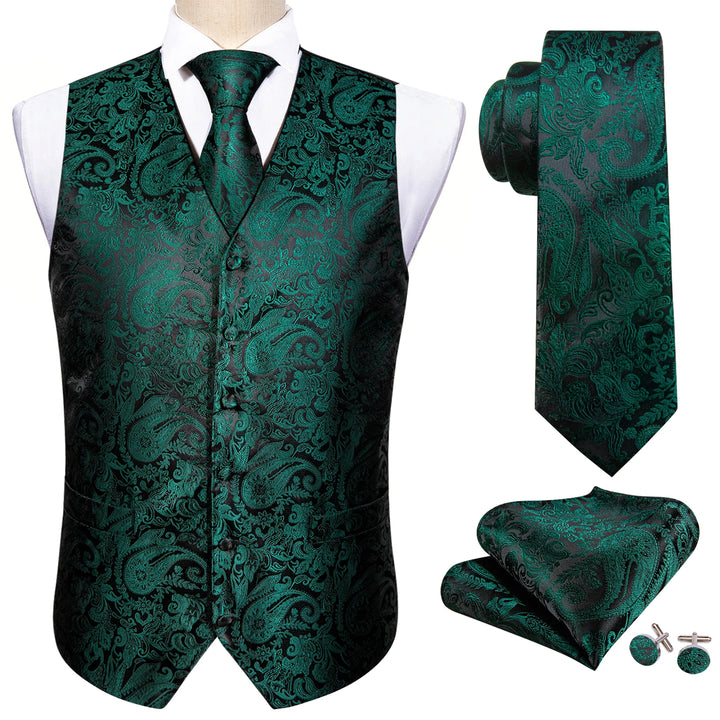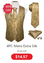 4PC Mens Extra Silk Vest Party Wedding Gold Paisley Black Green Blue Red Solid Waistcoat Vest Tie Suit Set Male Gilet Barry.Wang