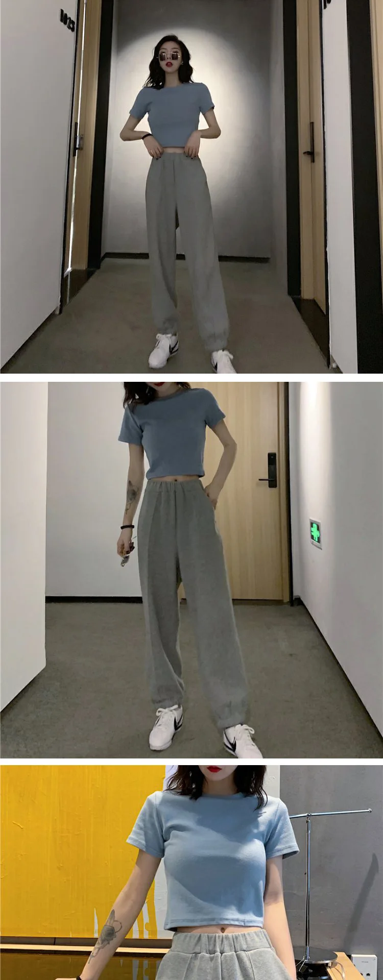 9 Colors Solid Crop Top Women Summer Sexy T-shirt Woman Short Sleeve O-Neck Tee Shirt Femme Skinny Basic Tshirt Korean Clothes