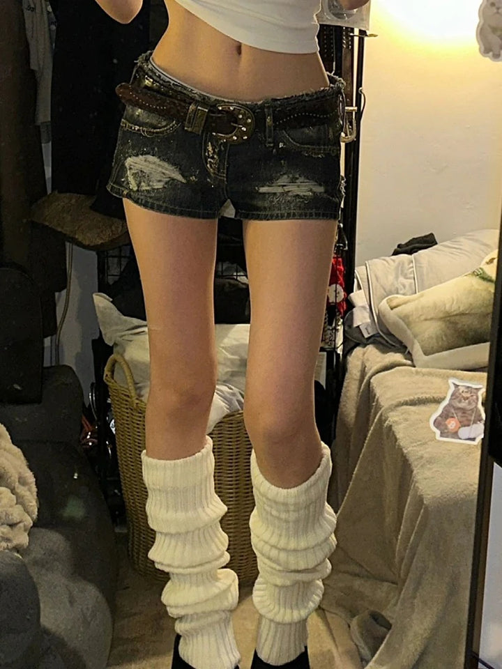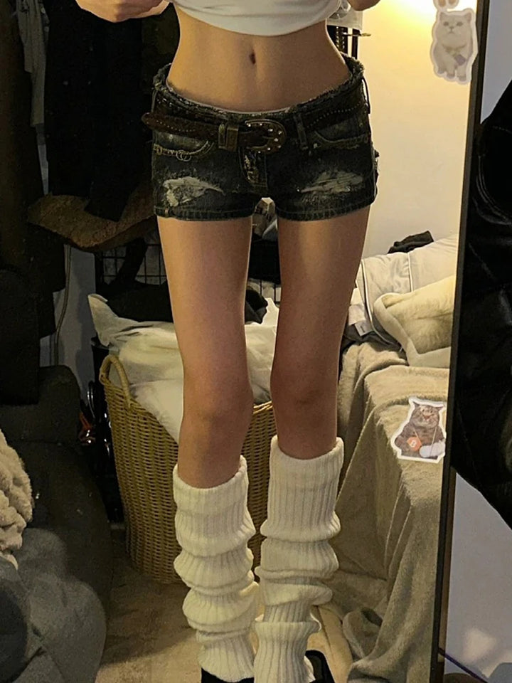 American Y2K Sexy Mini Chicly Hollow Out Female Shorts Summer Classic Low Waist Fashion Washed Distressed Slim Shorts for Women