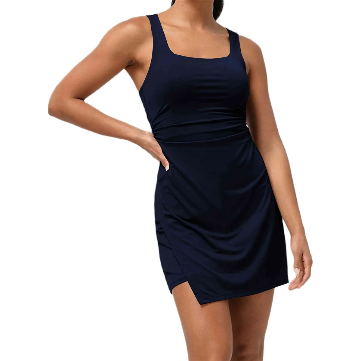 Our athletic dress for women with shorts features by low back cutout, racerback straps, square neck athletic skort dress for women, flattering and cute mini dress