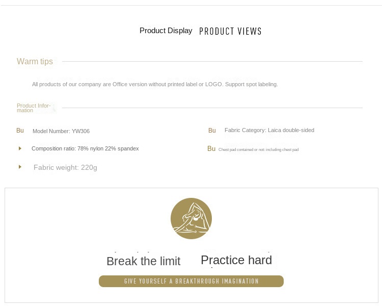 SPECIFICATIONSAge: JuniorApplicable Scenarios: Running, Fitness And Body Beauty, Sports Trend, DanceBrand Name: NoEnName_NullCN: GuangdongClothing Length: Super-ShortComposition Content Of Lining: 25Content Of Main Fabric Components: 75Craft of Weaving: OtherCup Type: Full CupDecoration: BacklessElasticity: High StrecthFabric Type: BlendedGender: WomenHign-concerned Chemical: NoneIs There A Steel Ring: No Steel RingItem Type: topsLin Composition: SpandexMain Fabric Composition: Nylon/nylonMaterial: Nylon,SpandexMold Cup Type: Medium Mold CupOrigin: Mainland ChinaPattern Type: SolidSeason: SummerStyle: Sporty,Sports And Leisure [xlmodel]-[photo]-[0000] Coat linkShort skirt link