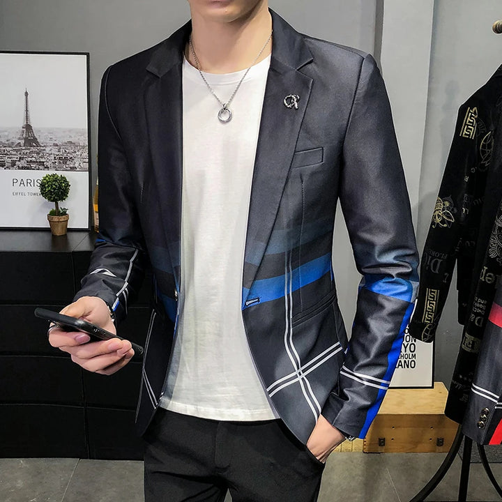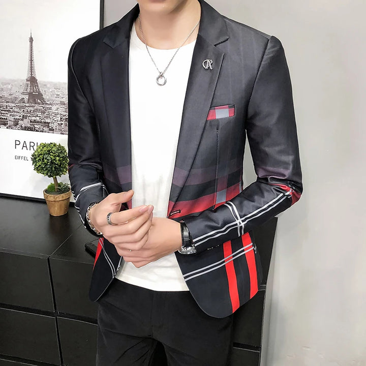 Blazer Men Boutique Fashion Plaid Men's Slim Casual Suit Jacket Male Ball Social Blazer Suit Coat Host Clothing