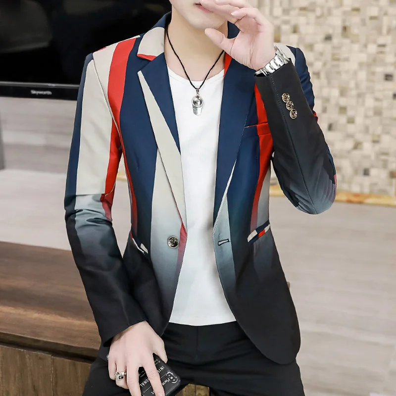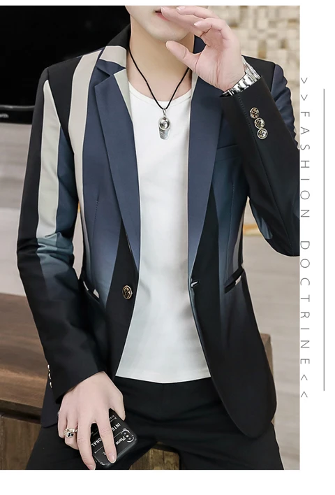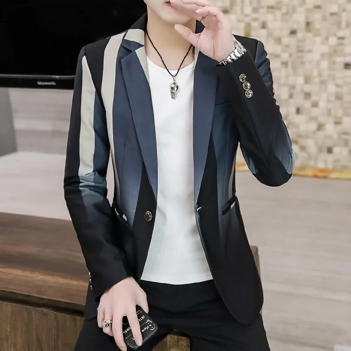 Blazer Men's Fashion Business Gentleman Slim-fit Stripes British Style Outdoor Performance Trend Wedding Banquet Casual Blazer