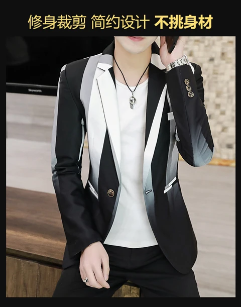 SPECIFICATIONS Applicable Scene: CASUAL Applicable Season: Four Seasons Brand Name: NoEnName_Null CN: Guangdong Choice: yes Closure Type: Single Breasted Clothing Length: Regular Craft of Weaving: Knit Gender: Men Hign-concerned Chemical: None Item Type: Blazers Material: POLYESTER,Viscose Origin: Mainland China Style: Smart Casual size_info: {"sizeInfoList":[{"length":{"cm":"Size","inch":"Size"},"size":"通用","vid":-42},{"length":{"cm":"M","inch":"M"},"size":"通用","vid":-43},{"length":{"cm":"L","inch":"L"},"size":"通用","vid":-44},{"length":{"cm":"XL","inch":"XL"},"size":"通用","vid":-45},{"length":{"cm":"2XL","inch":"2XL"},"size":"通用","vid":-46},{"length":{"cm":"3XL","inch":"3XL"},"size":"通用","vid":-47}]} whether full opening: Yes