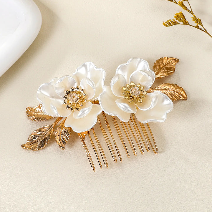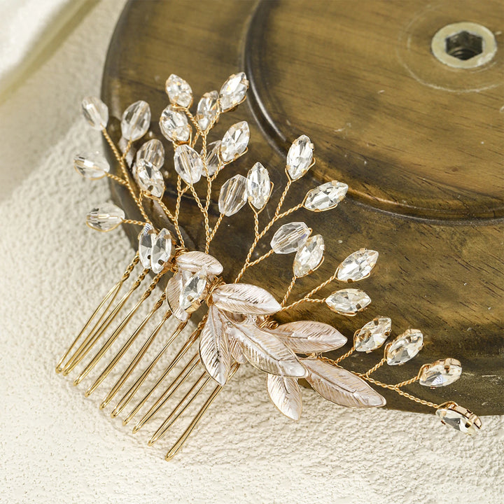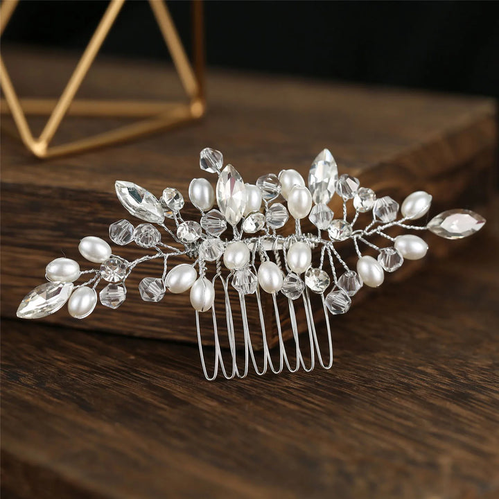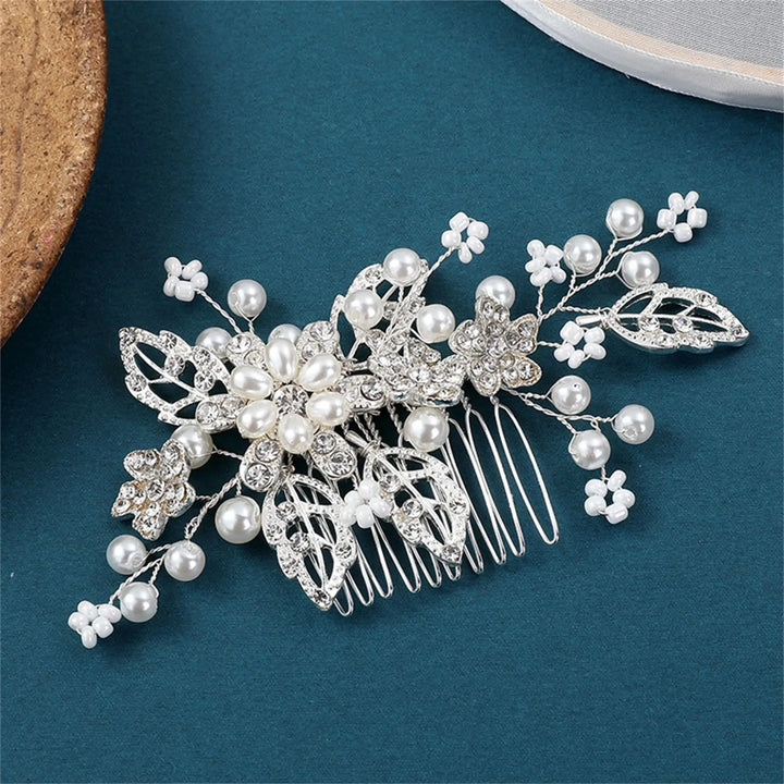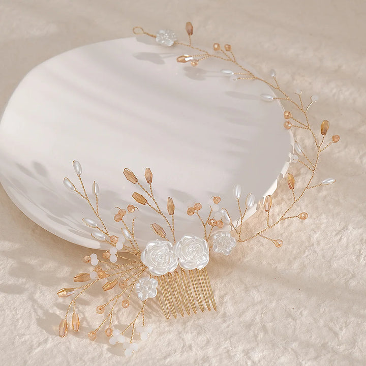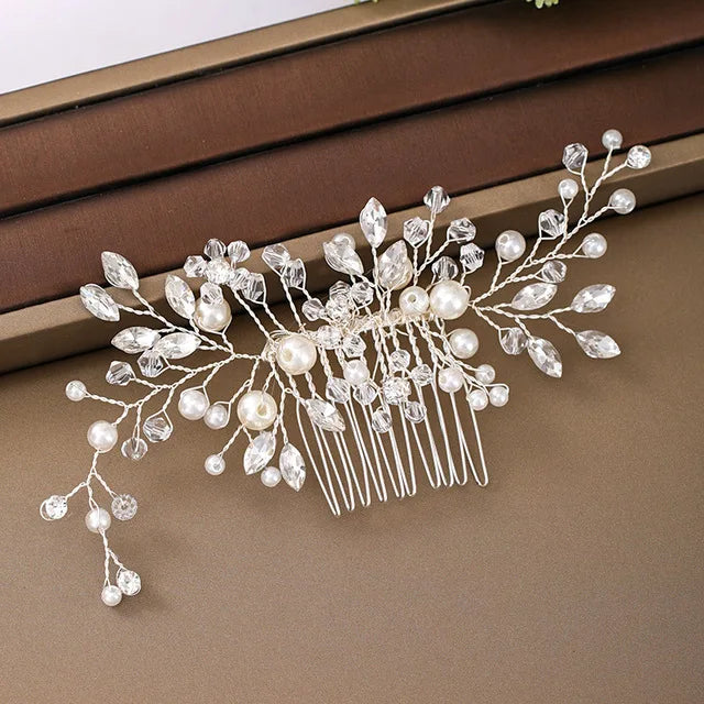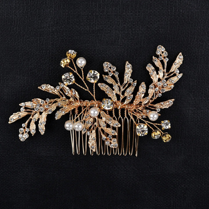 Luxurious Wedding hair accessories for bride Gold Metal Haircomb headpieces Comb clip Rhinestone Pearl Tiara crown Women Jewelry
