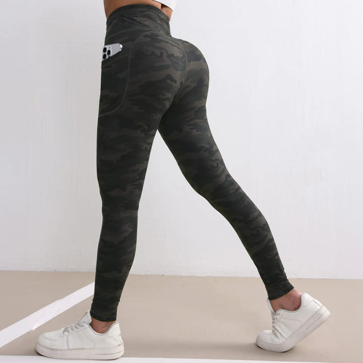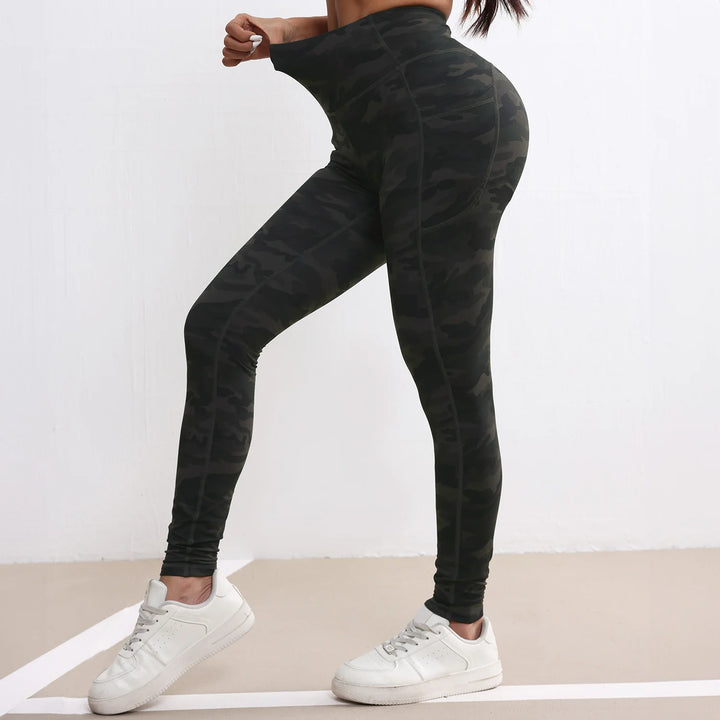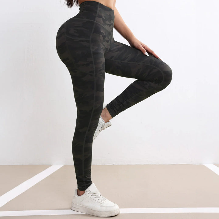 Camouflage Printed Gray Green Sexy Women's Sports Leggings High Waisted Slim Fit Suitable For Running Fitness Yoga Outdoor Pants