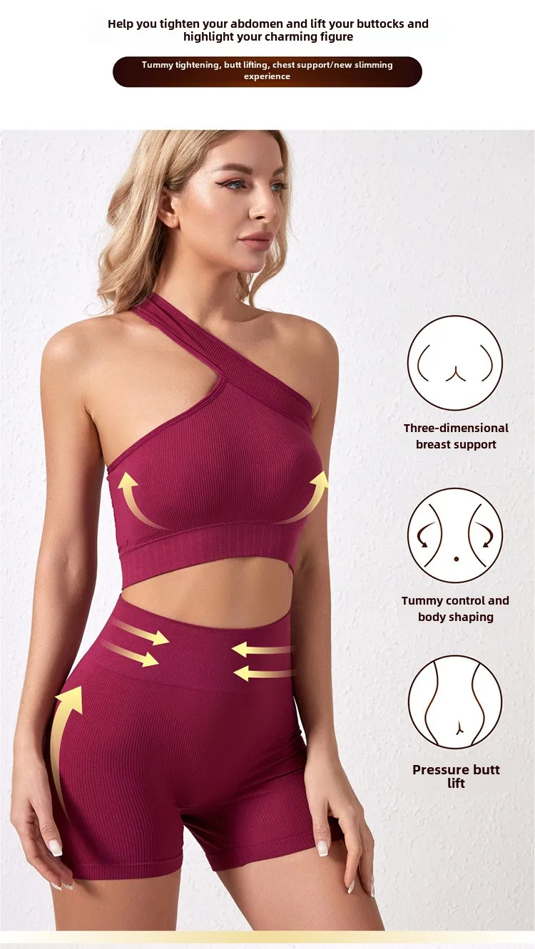 Custom LOGO women's seamless bra cover underwear sports fitness shock-proof off-the-shoulder back comfortable casual suit
