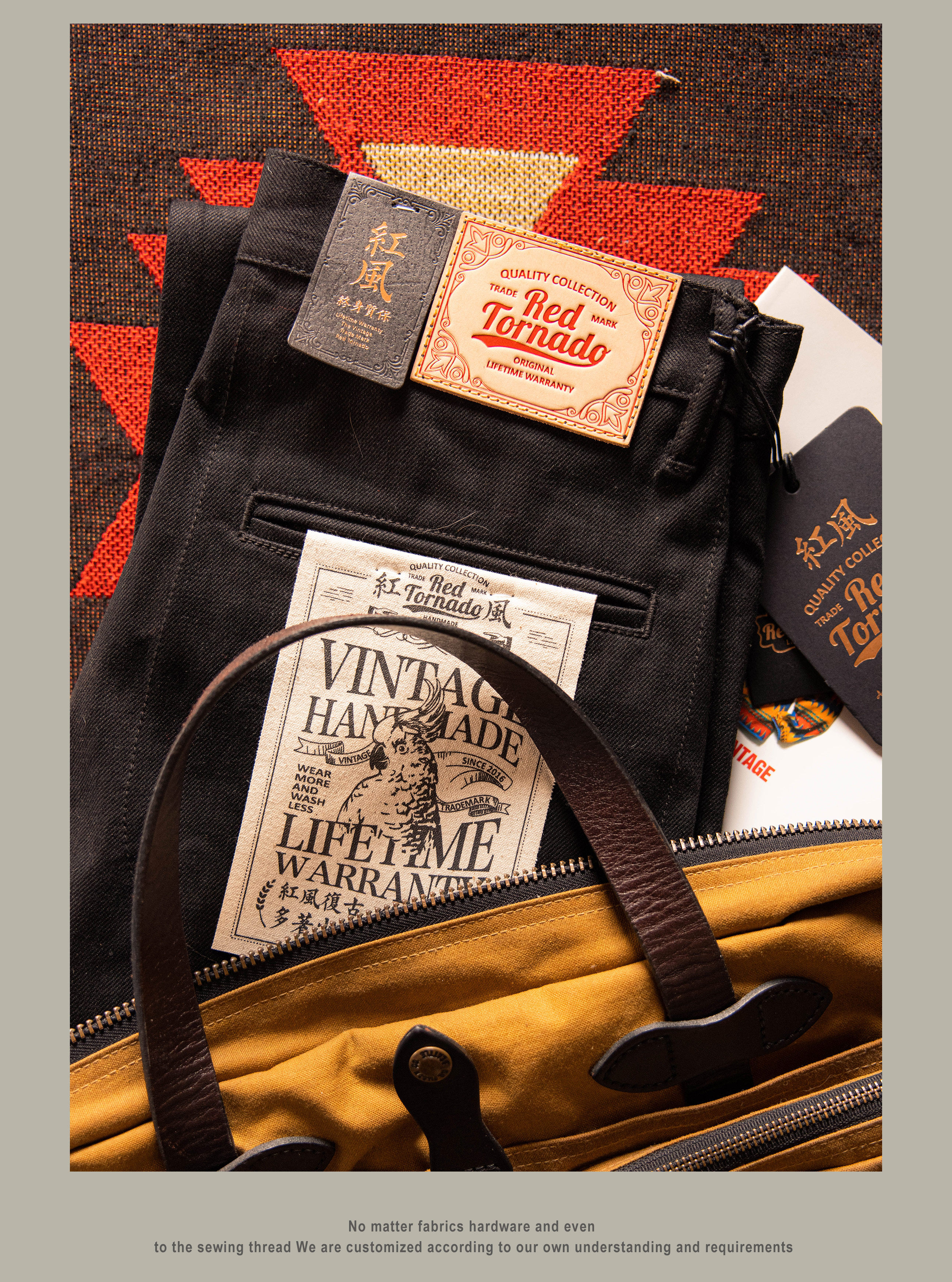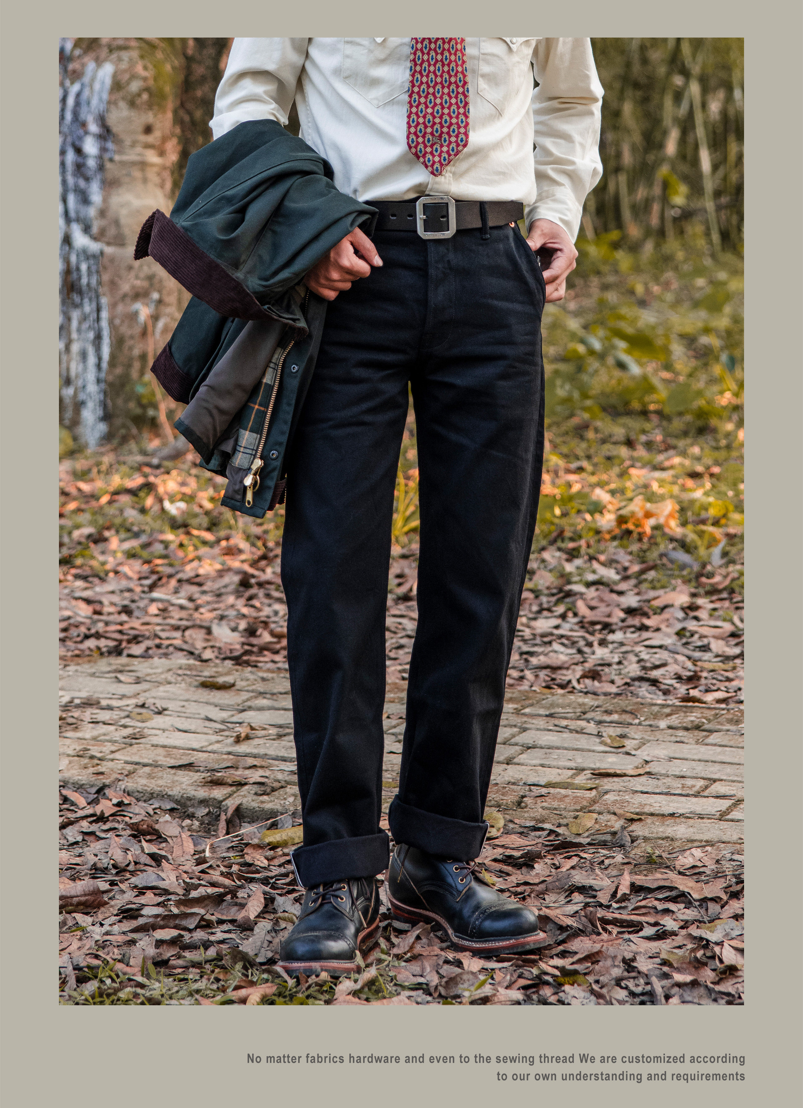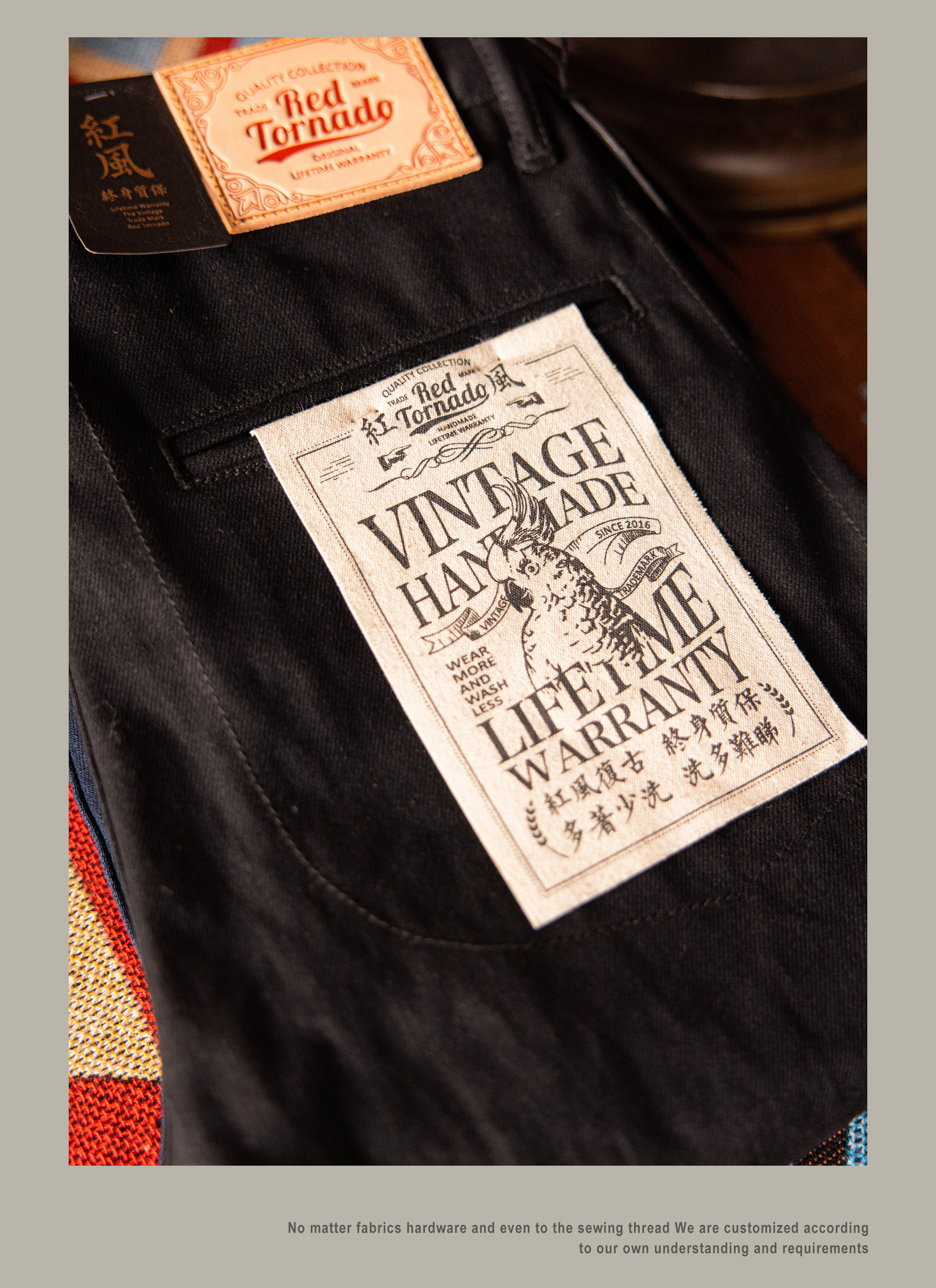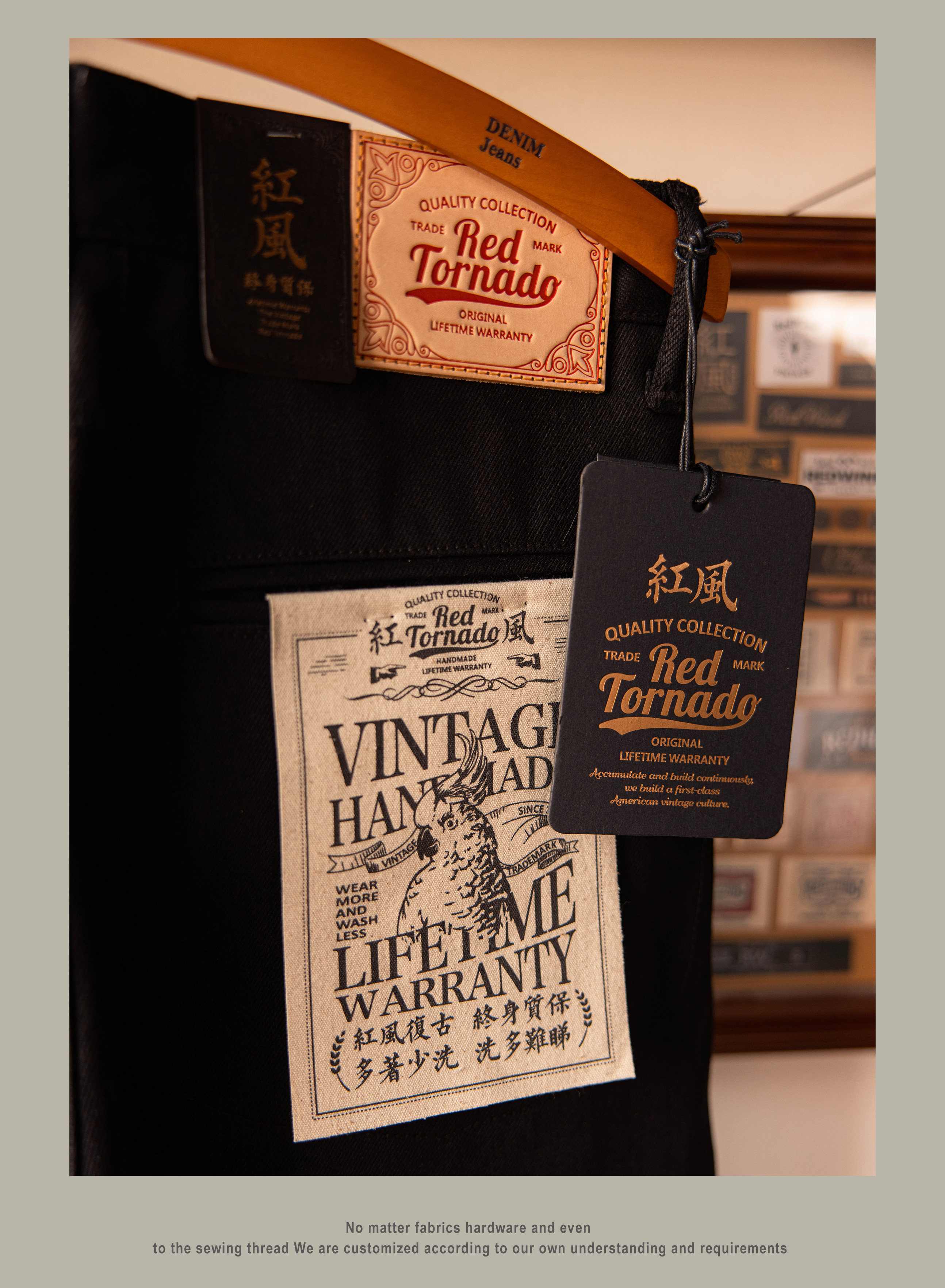 SPECIFICATIONSApplicable Scene: DailyApplicable Season: Spring And AutumnBrand Name: RedTornadoCN: GuangdongClosure Type: Button FlyCountry Preference: AsiaCraft of Weaving: TatDecoration: ButtonElasticity: Non StrechFabric Type: SoftenerFit Type: LooseGender: MenHign-concerned Chemical: NoneItem Type: JEANSJeans Style: Boyfriend JeansLength: full lengthMaterial: DenimModel Number: DN-0002Origin: Mainland ChinaPattern Type: SolidSpecial Size: Standard SizeStyle: CasualThickness: HeavyweightWaist Type: MIDWash: Nosize_info: {"sizeInfoList":[{"length":{"cm":"104","inch":"40.94"},"size":"S","vid":-1},{"length":{"cm":"110","inch":"43.31"},"size":"M","vid":-2},{"length":{"cm":"116","inch":"45.67"},"size":"L","vid":-3},{"length":{"cm":"122","inch":"48.03"},"size":"XL","vid":-4},{"length":{"cm":"128","inch":"50.39"},"size":"XXL","vid":-5}]}Original designWe have jeans factoryOem/Odm service availableWholesale / drop shipper welcome14 oz cotton fabricUnsanforised / unwashed100% indigo dyedCow leather patchIf you are not sure about the size,please measure your pants as below
