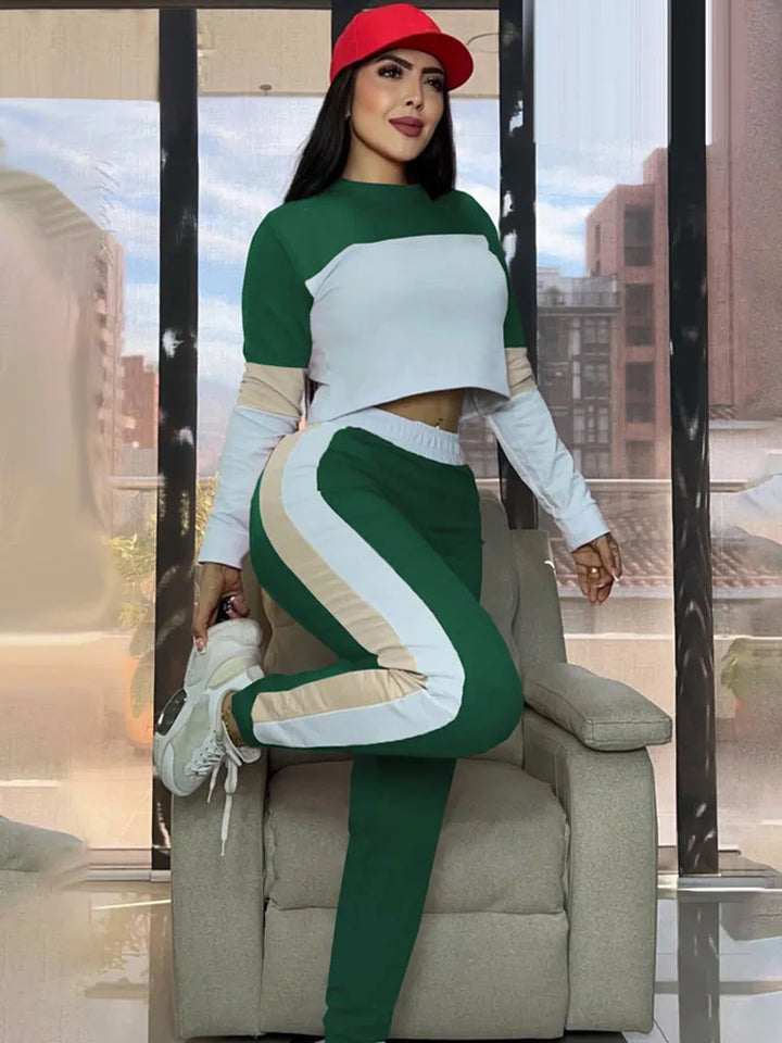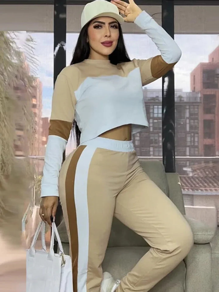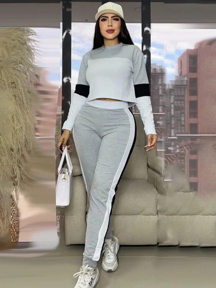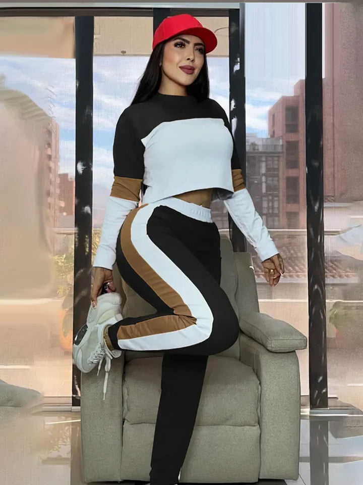 SPECIFICATIONSAge: MIDDLE AGEBrand Name: DoyerlCN: FujianChoice: yesClosure Type: PulloverClothing Length: Short(4 - 16 Inch)Clothing Patterns: SLIMCollar: O-NeckCraft of Weaving: Non-WovenDecoration: PATCHWORKElasticity: High StrecthFabric Type: synthetic fiberFabric content: 91% (inclusive) - 95% (inclusive)Fit Type: RegularFront Style: FlatGender: Women,Women,Lady,Ladies, FemaleHign-concerned Chemical: NoneKey words: Jogging Femme,Tracksuit Set Woman 2 Piece,Matching SetsMaterial: POLYESTER,SpandexMaterial Composition: synthetic fiberModel Number: 8969Number of Pieces: 2 piece setOccasion: Sports,Daily,Party,Clubwear,Jogger,Gym,YogaOrigin: Mainland ChinaPant Closure Type: Elastic WaistPant Length(cm): Ankle-Length PantsPant Style: RegularPattern Type: PATCHWORKPlace Of Origin: China (mainland)Release Date: Summer 2025Season: Autumn/Winter,Spring,Autumn,WinterSleeve Length(cm): FullSleeve Style: RegularStyle: Sporty,Fashion,Sexy,Casual,Sporty,Fitness,Workout,RunningWaist: High Waistsize_info: {"sizeInfoList":[{"length":{"cm":"92","inch":"36.22"},"size":"S","vid":100014064},{"length":{"cm":"96","inch":"37.80"},"size":"M","vid":361386},{"length":{"cm":"102","inch":"40.16"},"size":"L","vid":361385},{"length":{"cm":"108","inch":"42.52"},"size":"XL","vid":100014065},{"length":{"cm":"114","inch":"44.88"},"size":"XXL","vid":4182}]}whether full...