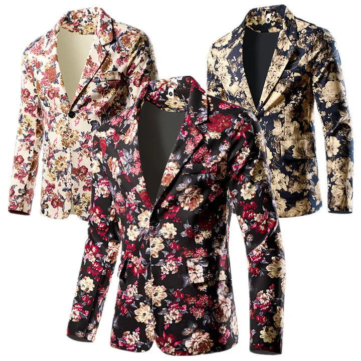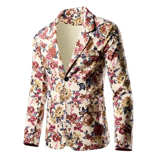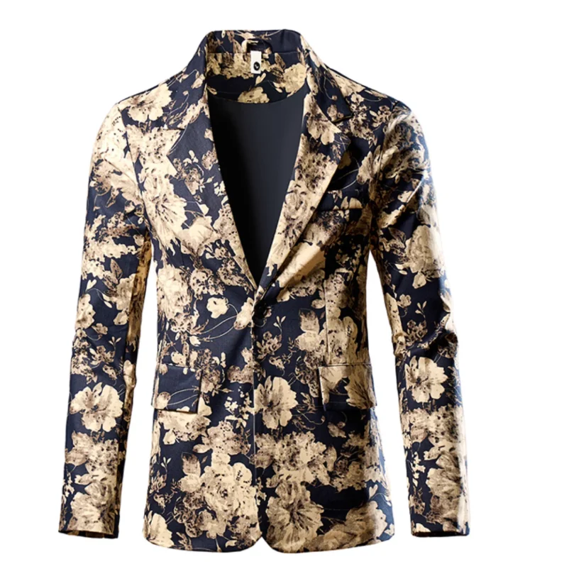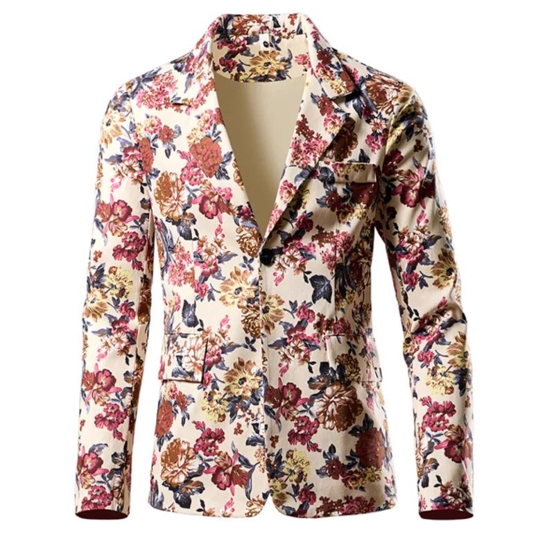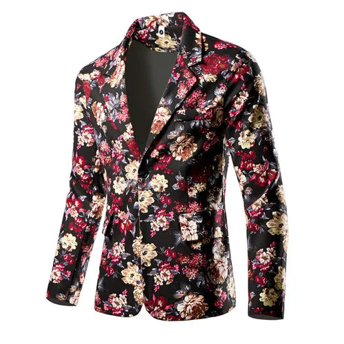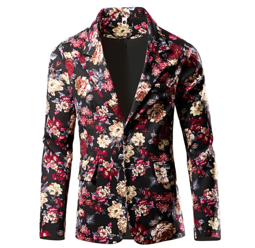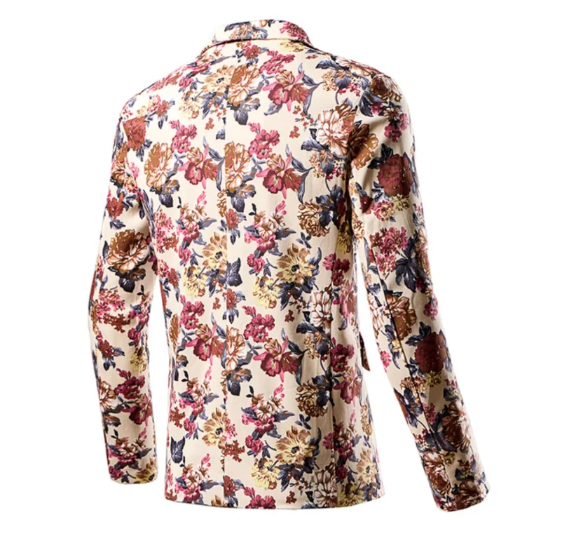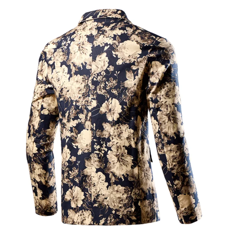 Fashion Men 3D Digital Printed Suit Slim Fit Jacket Male Wedding Dance Party Trendy Dress Floral Blazer Coats