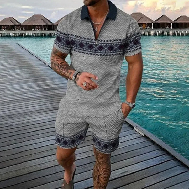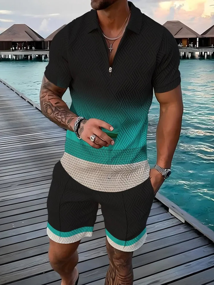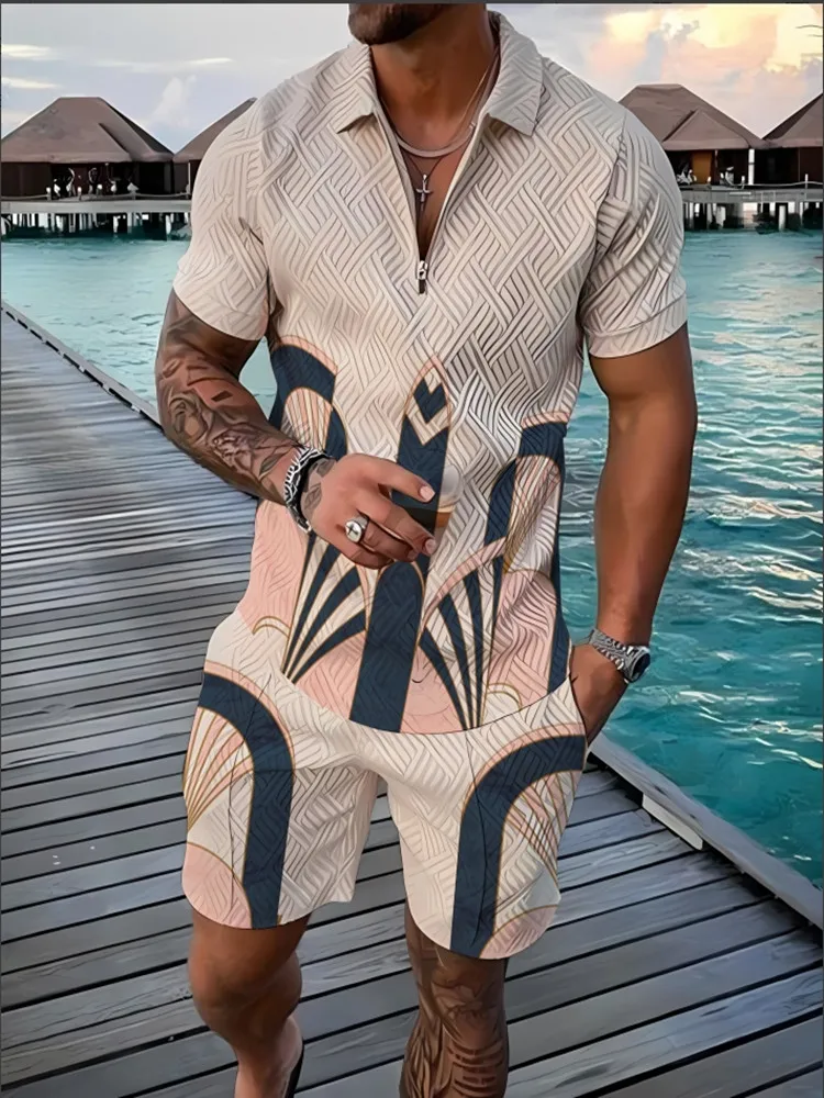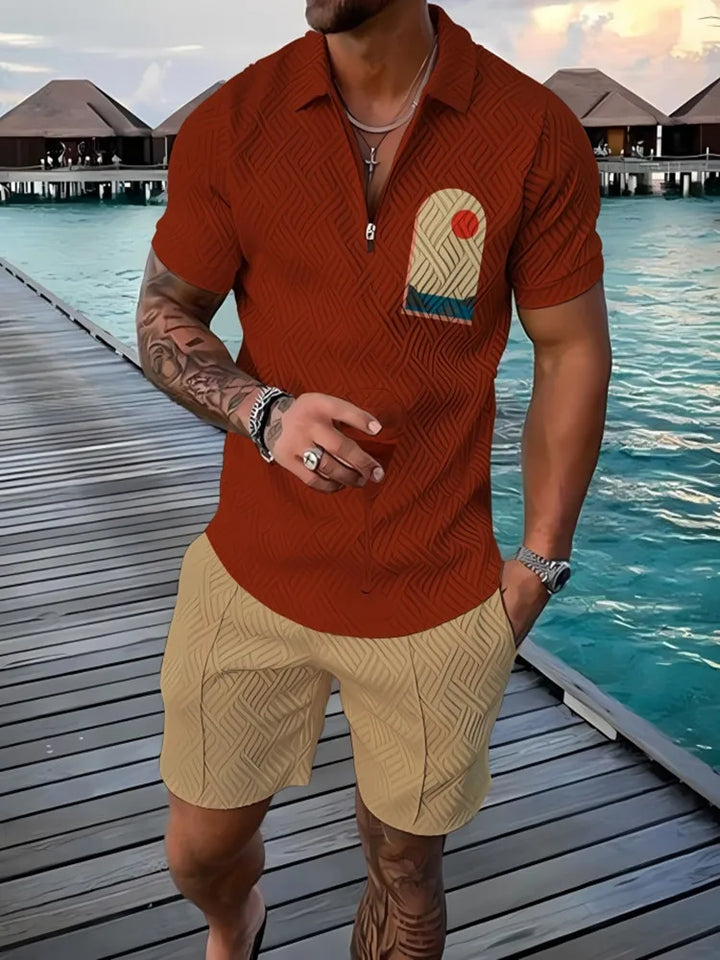 Style 21: Summer Zip Short Sleeve Polo Shirts Shorts Men's Sets
