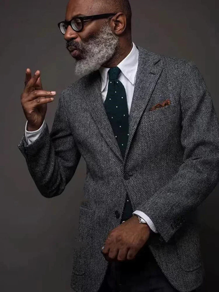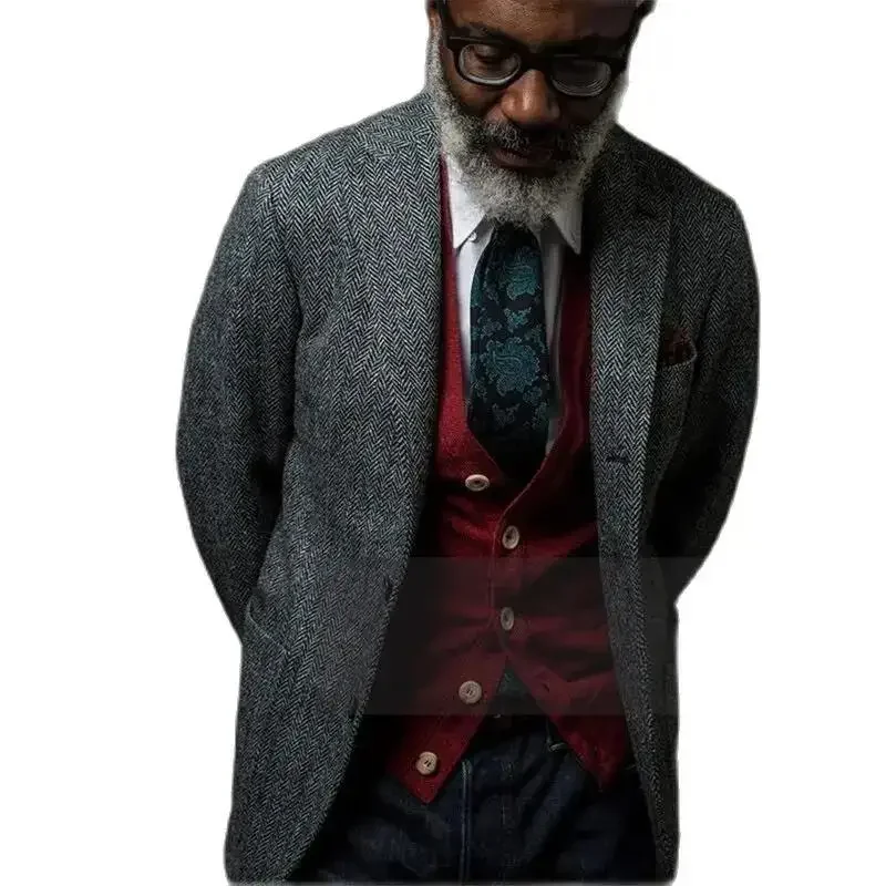 Gray Wool Tweed Winter Suit Blazer Single Breasted Suit Jacket Formal Fashion Notch Lapel Herringbone Coat for Wedding/Business