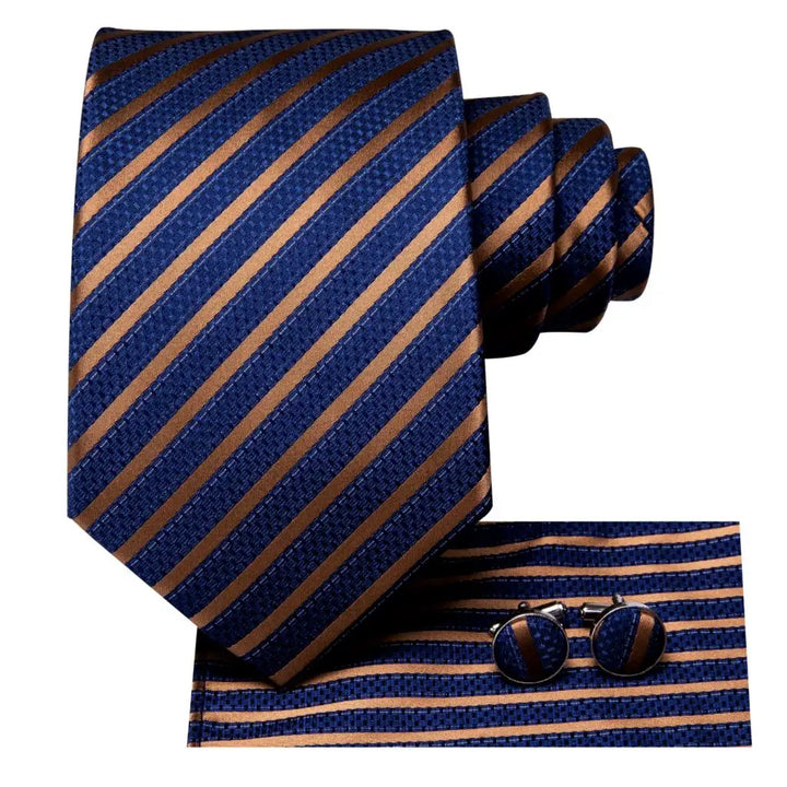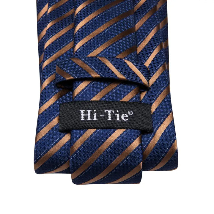 Hi-Tie Silk Mens Business Tie Striped Navy Blue Wedding Necktie For Men Quality Hanky Cufflink Party Fashion Designer Wholesale