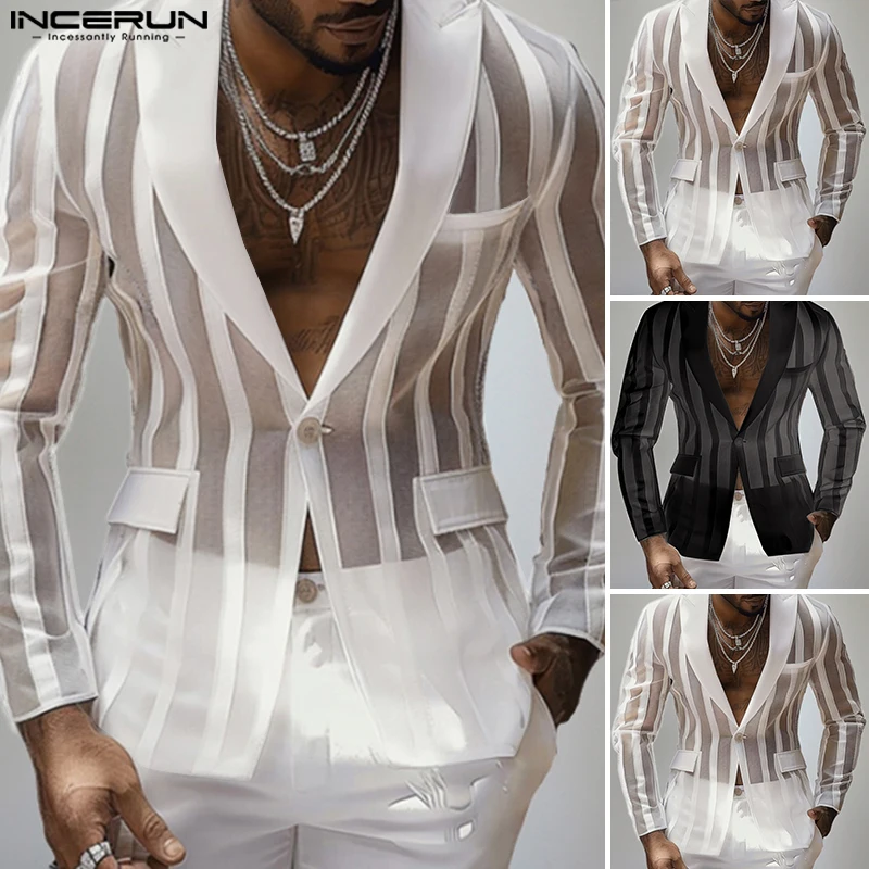 INCERUN Handsome New Men Tops 2024 See-through Striped Suit Coats Stylish Party Shows Hot Selling Long Sleeved Blazer S-5XL 2024