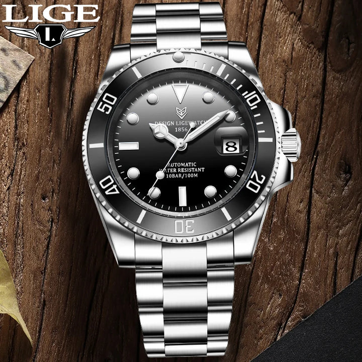 LIGE Fashion Luxury Mechanical Man Watch Top Brand Tourbillon Business Automatic Watches for Men Stainless Band Waterproof Clock
