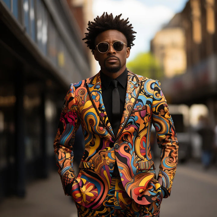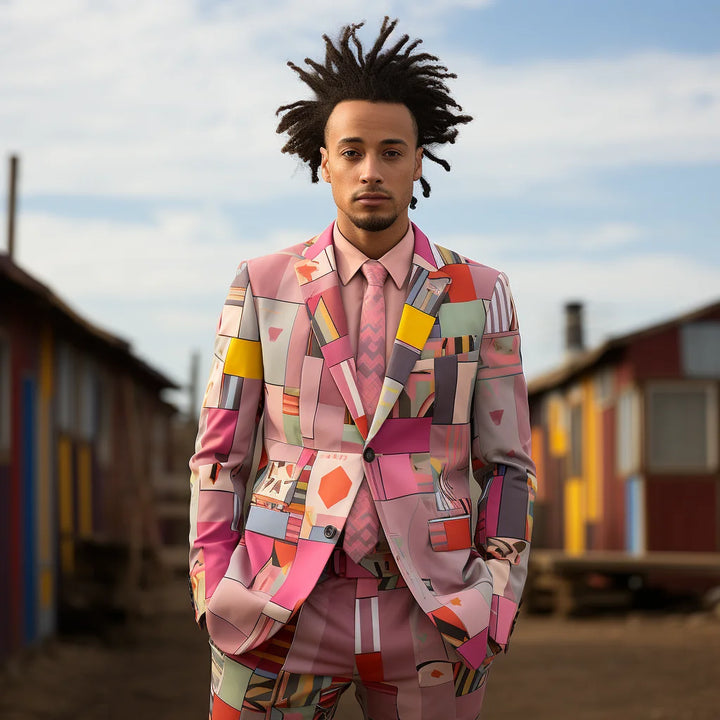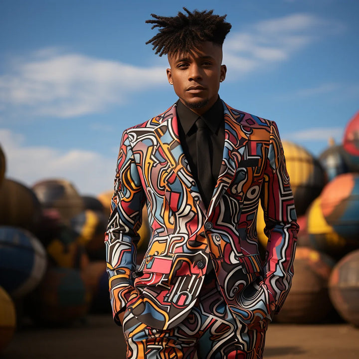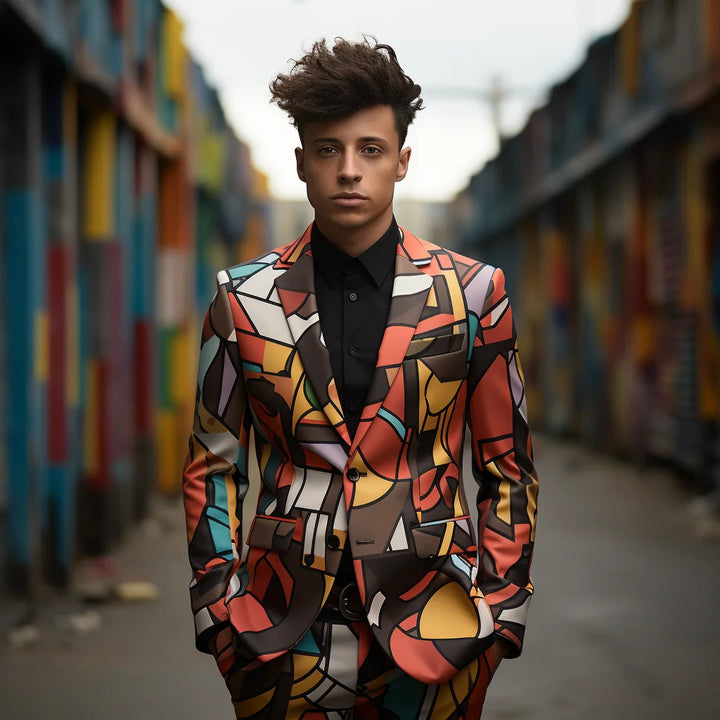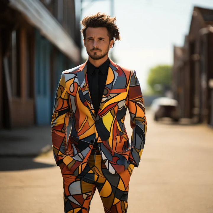 Long-sleeved Casual Colour Blocking Slim Suit Men's 3D Digital Printing Suit Cos Party Stage Nightclub Cool Performance Suit
