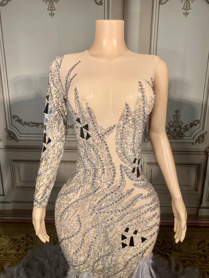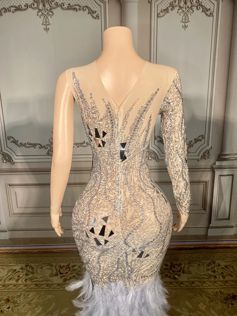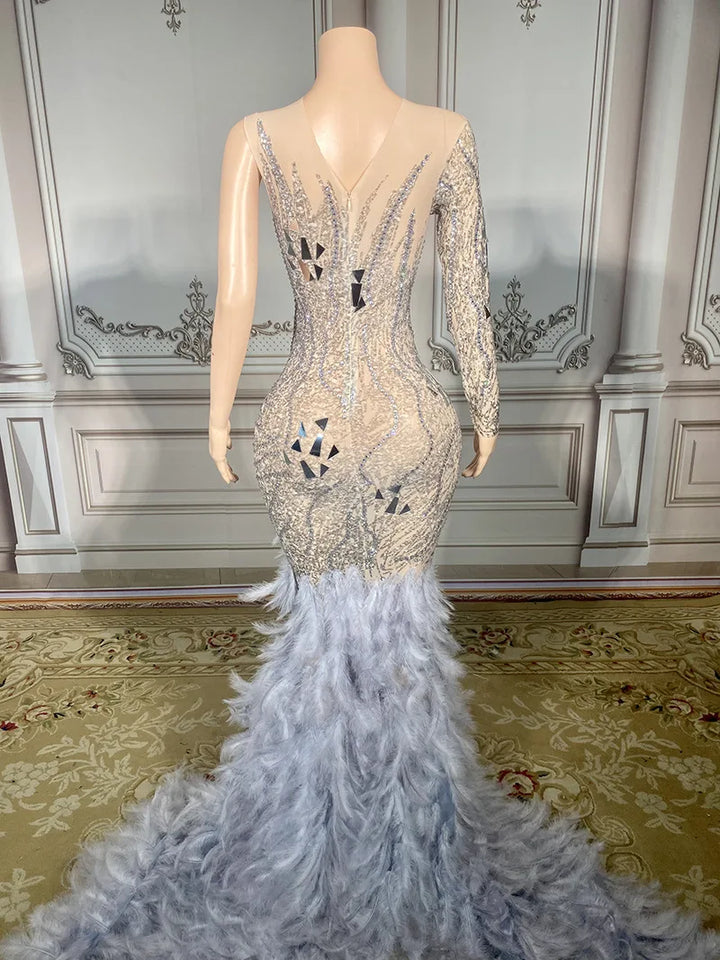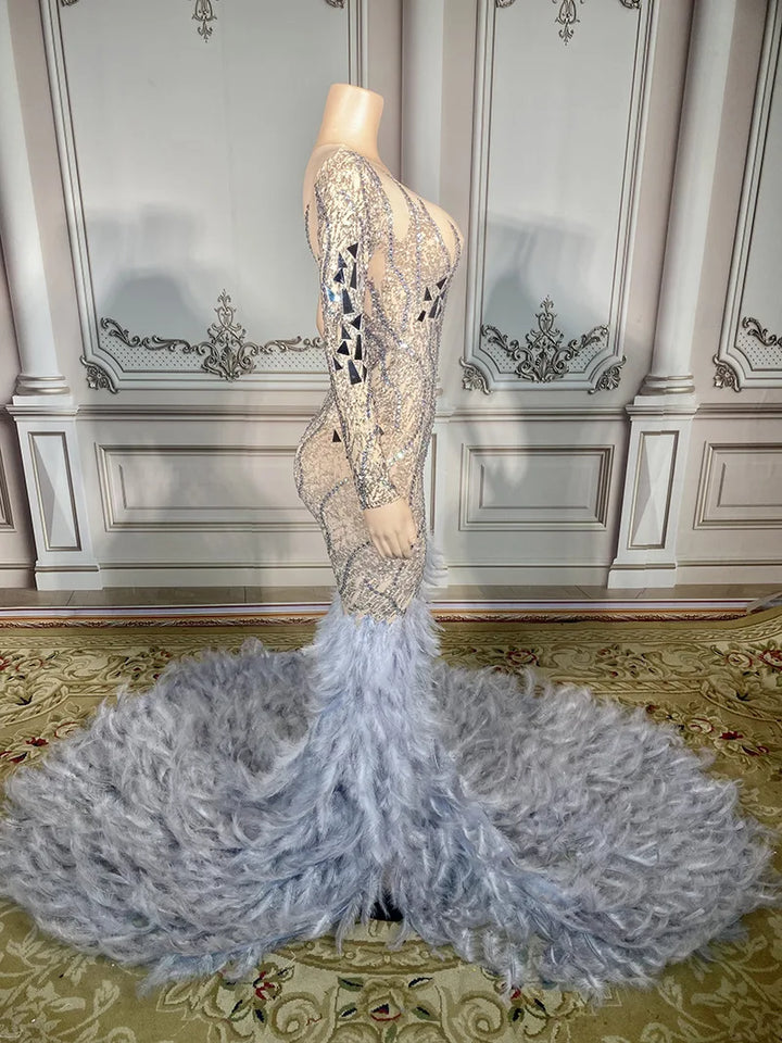 Luxurious Sparkly Feather Tail Dress Women Evening Prom Celebrity Party Birthday Wear Singer Stage Costume Wedding Wedding Dress