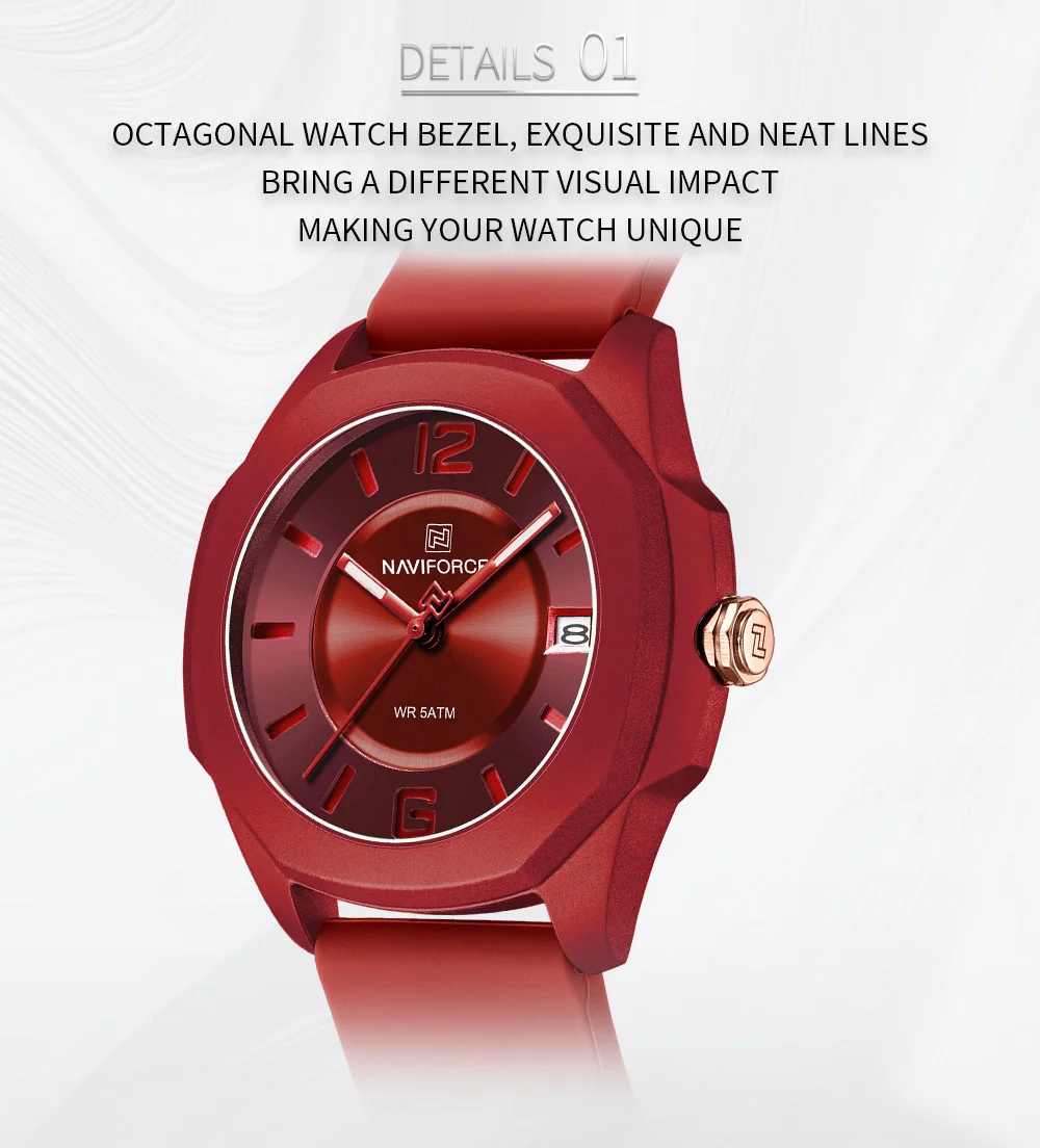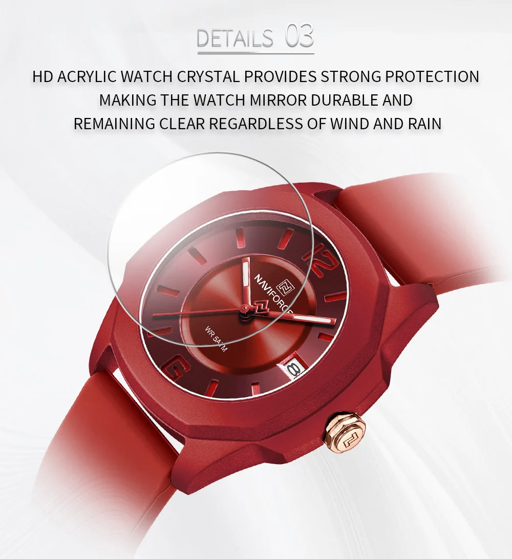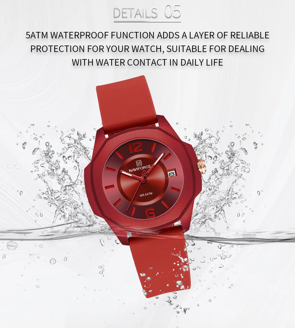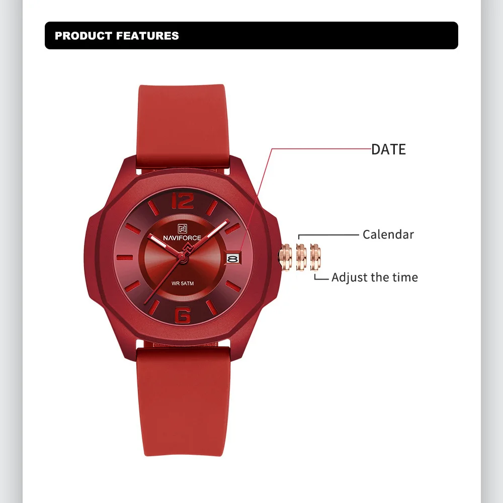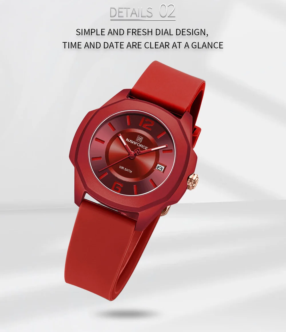 NAVIFORCE Ladies Watch For Women Silicone Strap Clock Quartz Wrist Watches for Women 5ATM Waterproof Casual Relogio Feminino