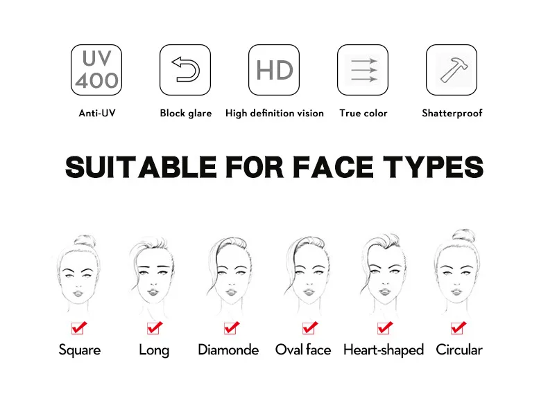 Super light-weight design can hardly feel them on your face, gives you stress-free wearing experience which ensures you a long time wearing in comfort and style!