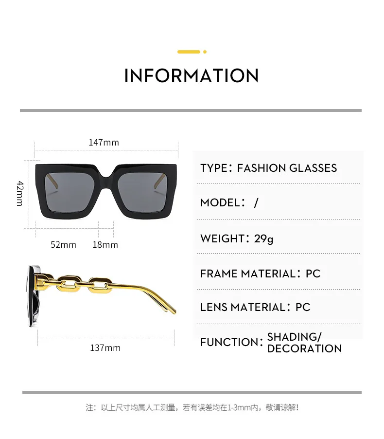 New Fashion Large Frame WOMEN'S Sunglasses Personality Chain Leg Sunglasses Premium Sunglasses