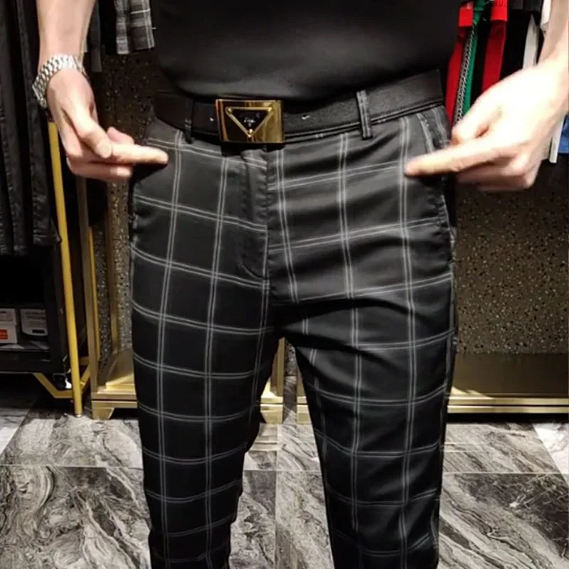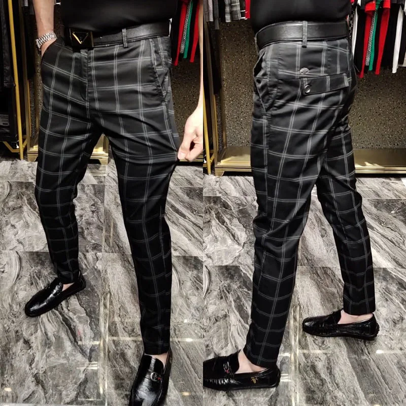 New Male Classic Black Formal Pants Men Striped Plaid Business Casual Fashion Comfortable Office Cotton Slim Suit Trousers 29-38