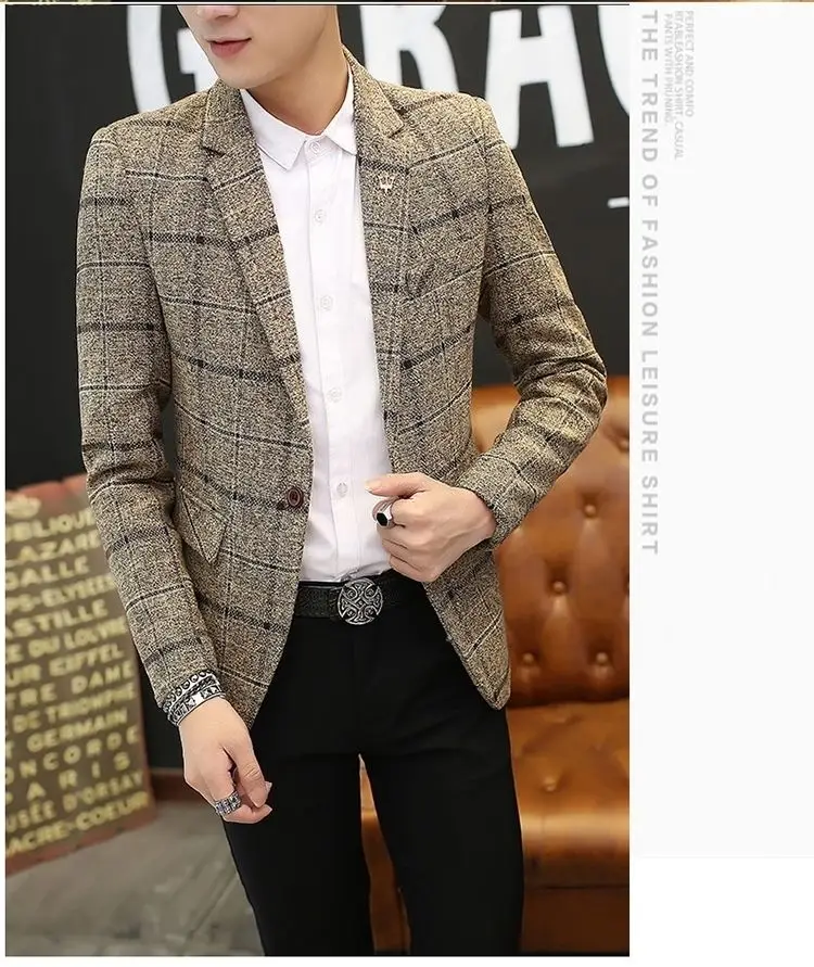New Men's Suit Jacket 2021 Spring Autumn Street Men's Plaid Suit Jacket Casual Business Brand Clothing Men Slim Blazer Masculino