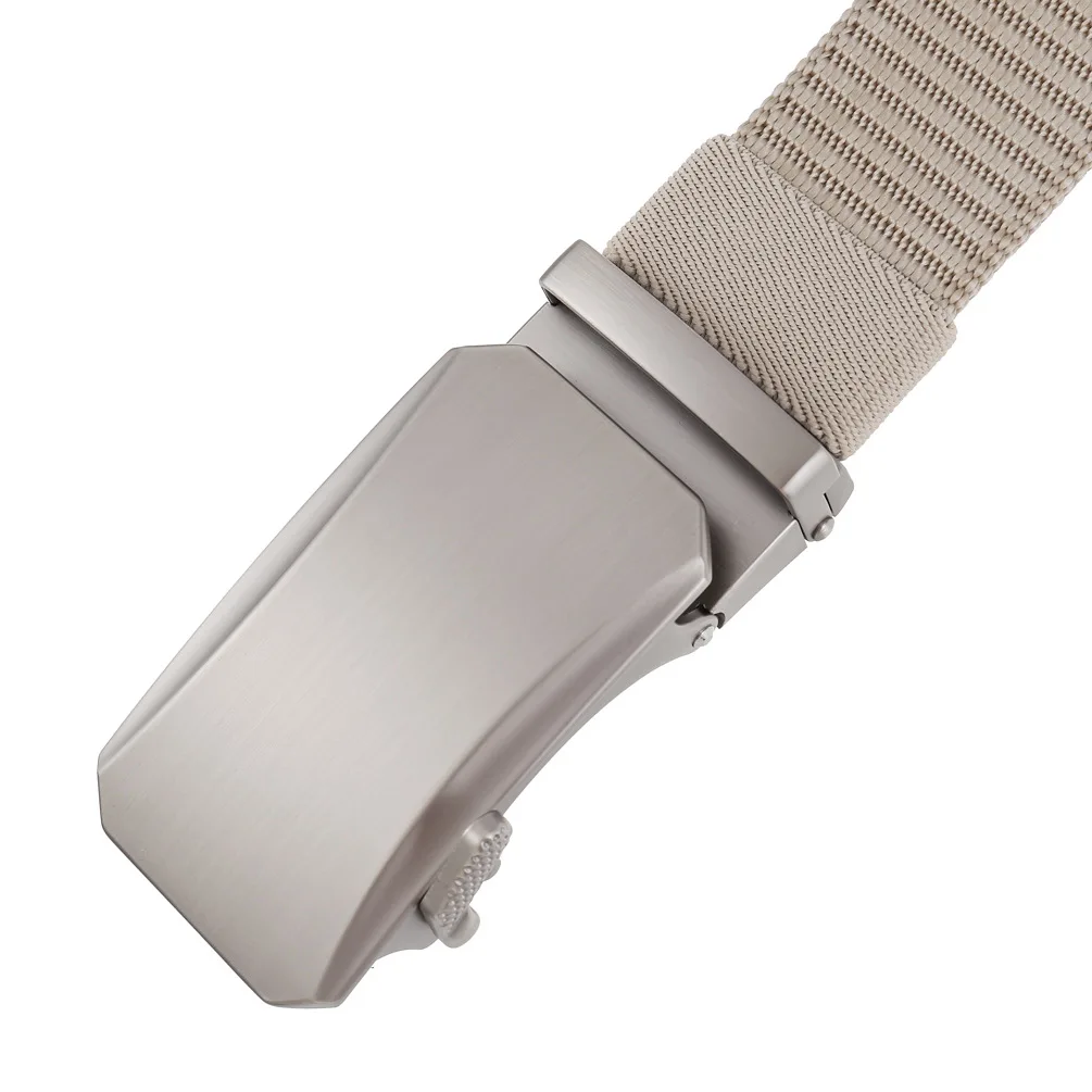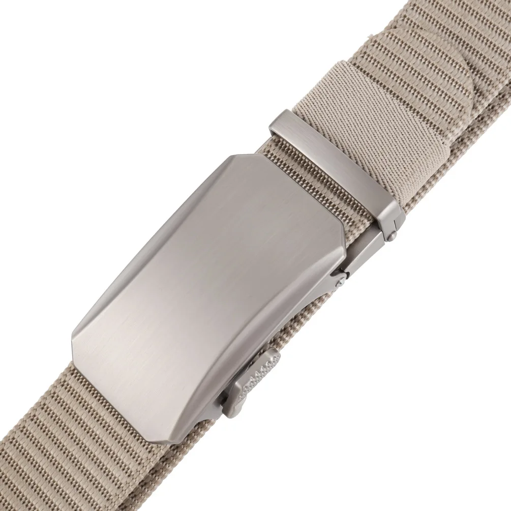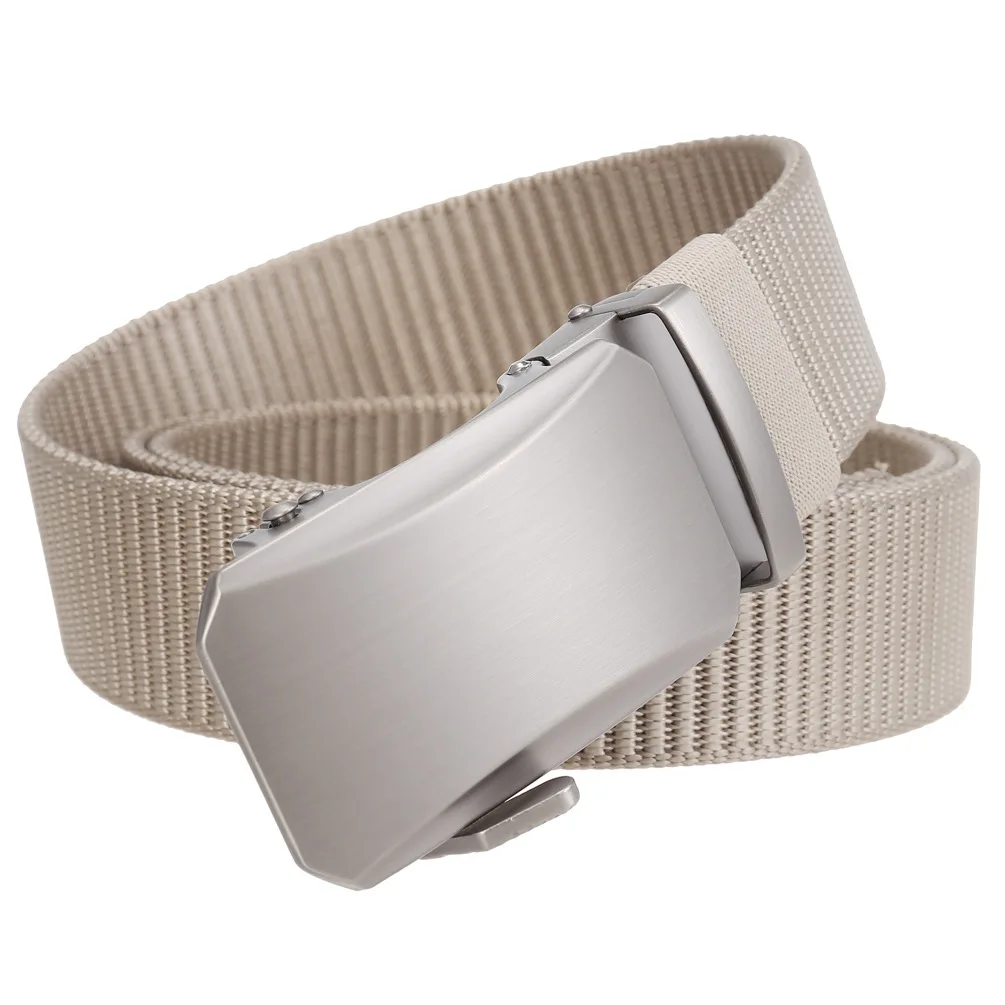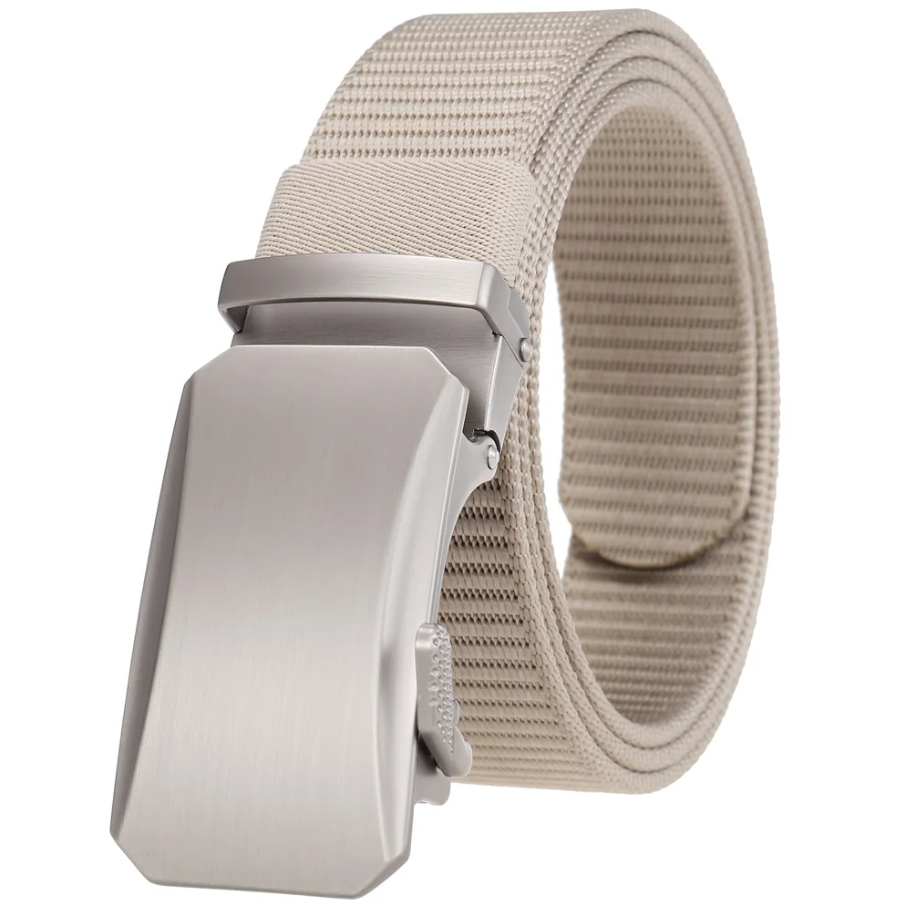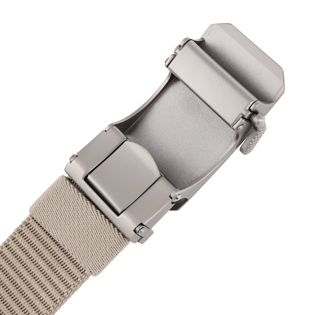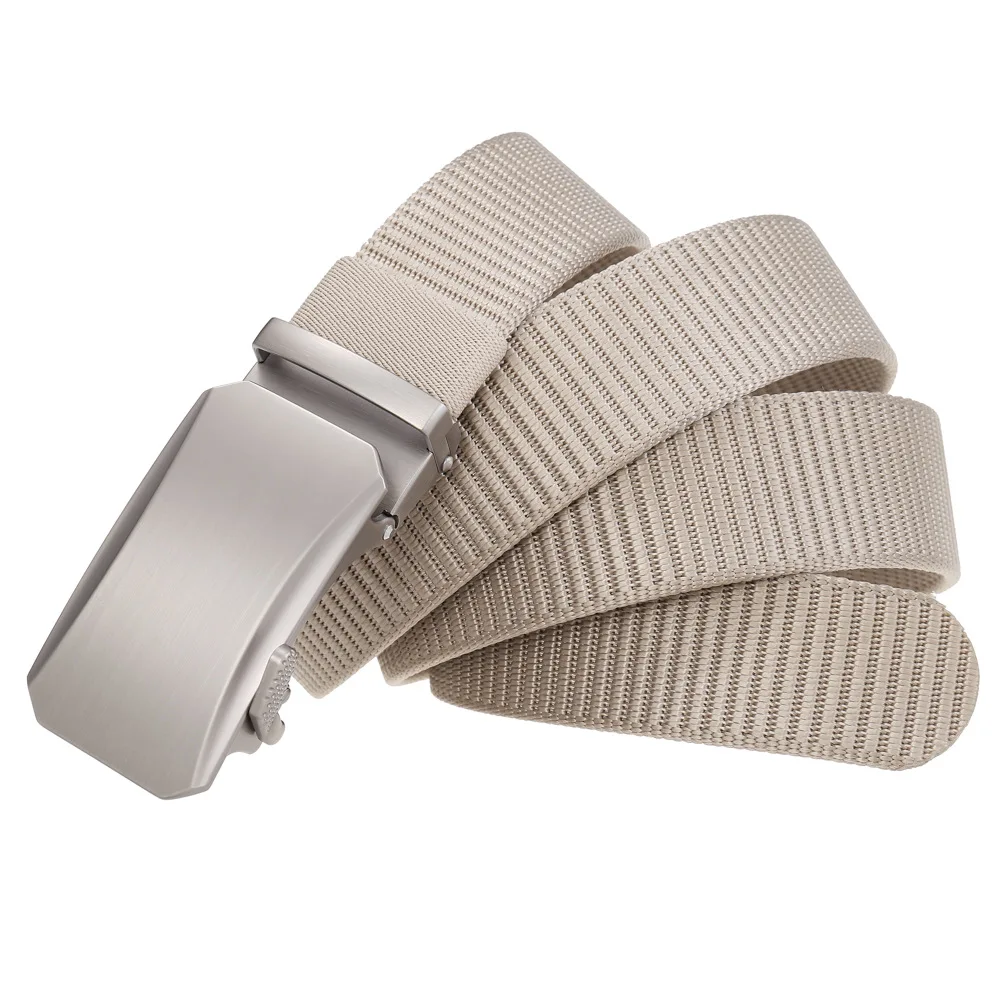Plyesxale Luxury Designer Mens Military Automatic Buckle Nylon Belts Top Quality Gray Beige Belts For Man Casual Waist Belt B70