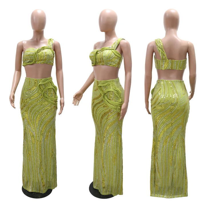 Sexy One-shoulder Long Summer Dress Sequin Birthday Holiday Elegant Party Evening Dresses Luxury Womens Prom Dresses XSY29