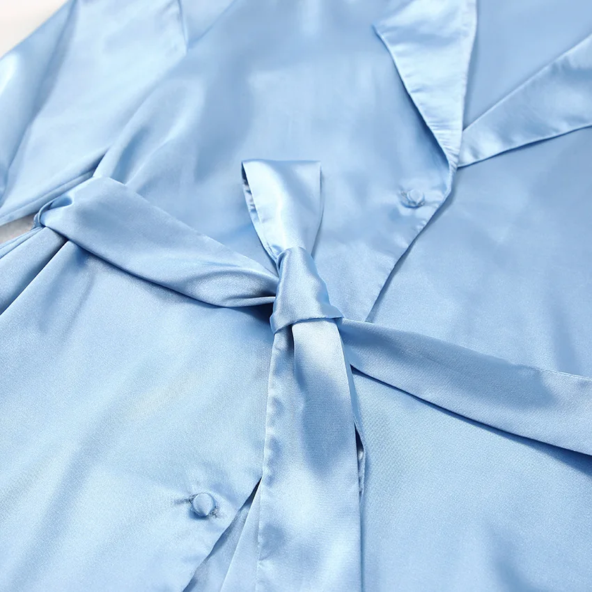 SPECIFICATIONSBrand Name: NoEnName_NullCN: GuangdongCollar: Turn-Down CollarCraft of Weaving: TatGender: WomenHign-concerned Chemical: NoneItem Type: PAJAMASLength: full lengthMaterial: POLYESTER,SpandexMaterial Composition: 100%polyesterModel Number: SLEEPWEARObscene Picture: NoOrigin: Mainland ChinaPattern Type: SolidSeason: AutumnSexually Suggestive: NoSleeve Length(cm): FullStyle: ElegantThickness: normal Silk-like Sleepwear Set Women's French Style Long Sleeve Pajamas Loungewear Luxurious Soft Comfortable Spring Summer Homewear