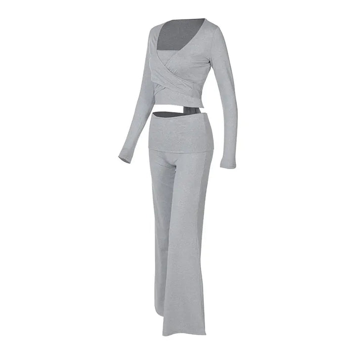 Spring New Women's T-shirt Pants 2 Piece Set Streetwear Fashion Long Sleeves Lace-up Tees Casual Trousers Elegant Slim Clothing