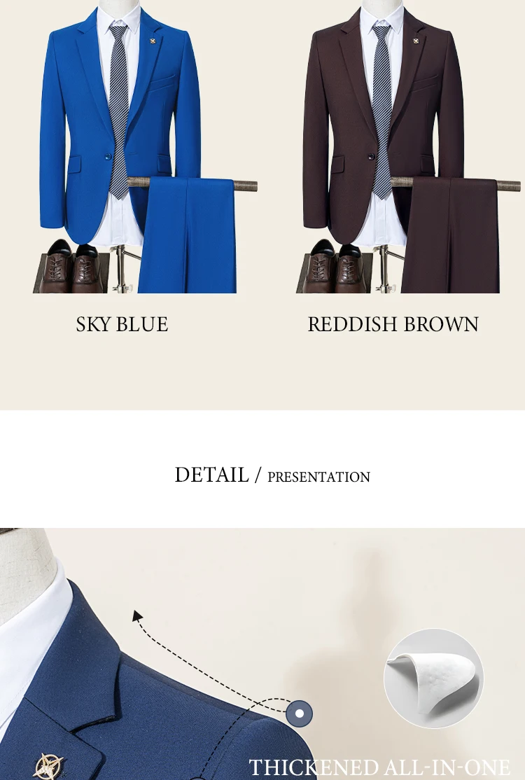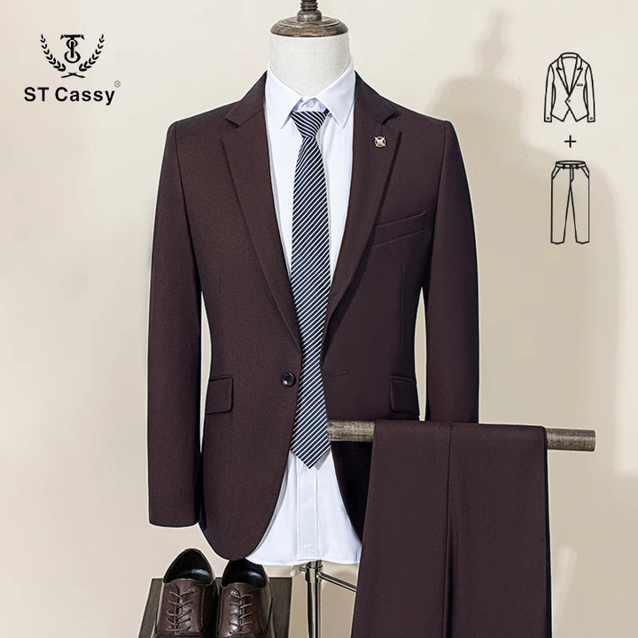 ST Cassy High Quality Men's Suit Slim Fit Solid Color Suit Formal Business Office Single Breasted Coat Pants 2 Pieces Set
