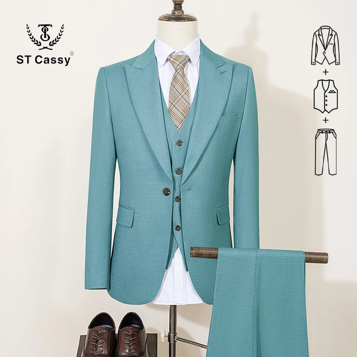 ST Cassy High Quality Men's Suit Summer thin breathable Slim Fit Formal Business Office Men's Suits(jacket+Vest+Pants)