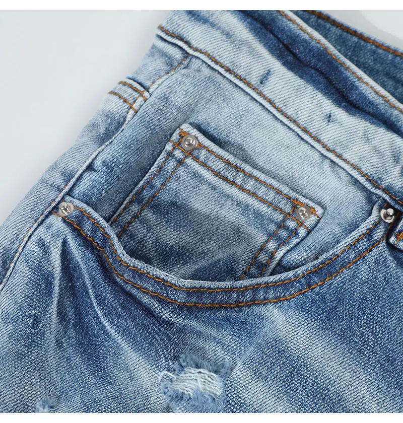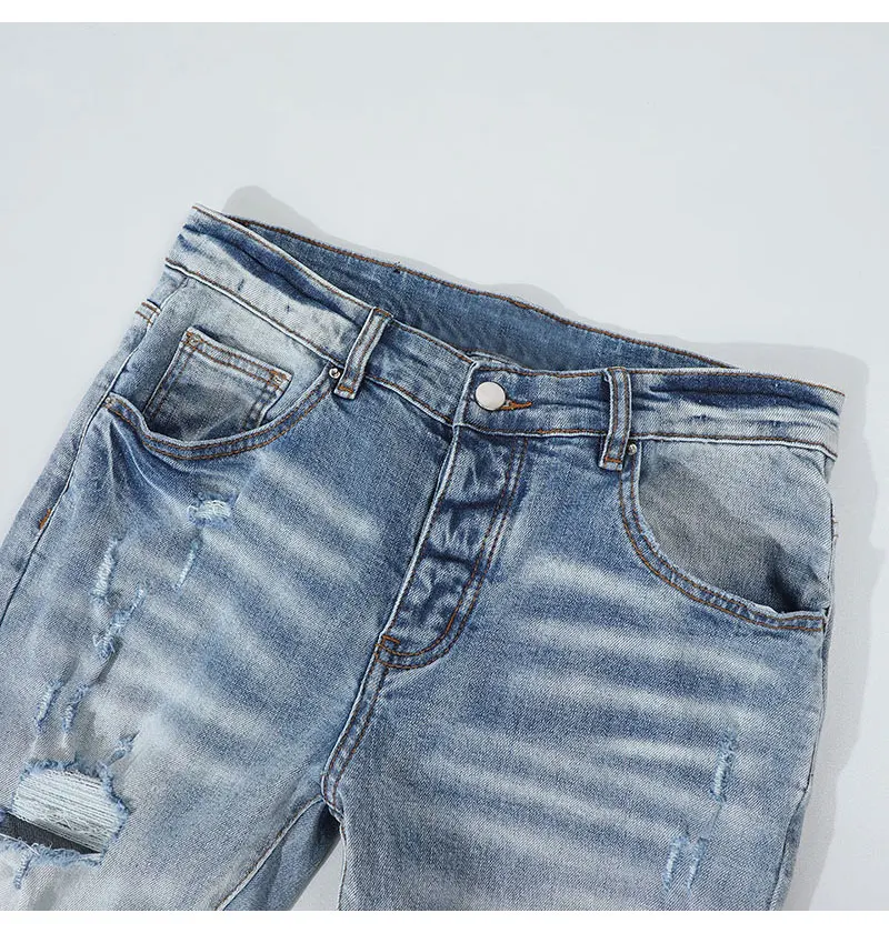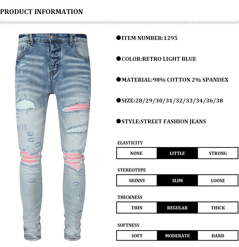 SPECIFICATIONS Applicable Scene: CASUAL Applicable Season: Four Seasons Brand Name: NoEnName_Null CN: Anhui Closure Type: Button Fly Color: Retro Light Blue Country Preference: Europe and America Craft of Weaving: Knit Decoration: Hole Elasticity: Slight Strech Fabric Type: Stripe Fit Type: Slim Gender: Men Hign-concerned Chemical: None Item Type: JEANS Jeans Style: pencil pants Length: full length Material: Denim,98% Cotton 2% Spandex Model Number: 1295 Origin: Mainland China Pattern Type: Solid Place Of Origin: China (mainland) Size: 28/29/30/31/32/33/34/36/38 Special Size: Standard Size Style: High Street Thickness: Midweight Waist Type: MID Wash:...