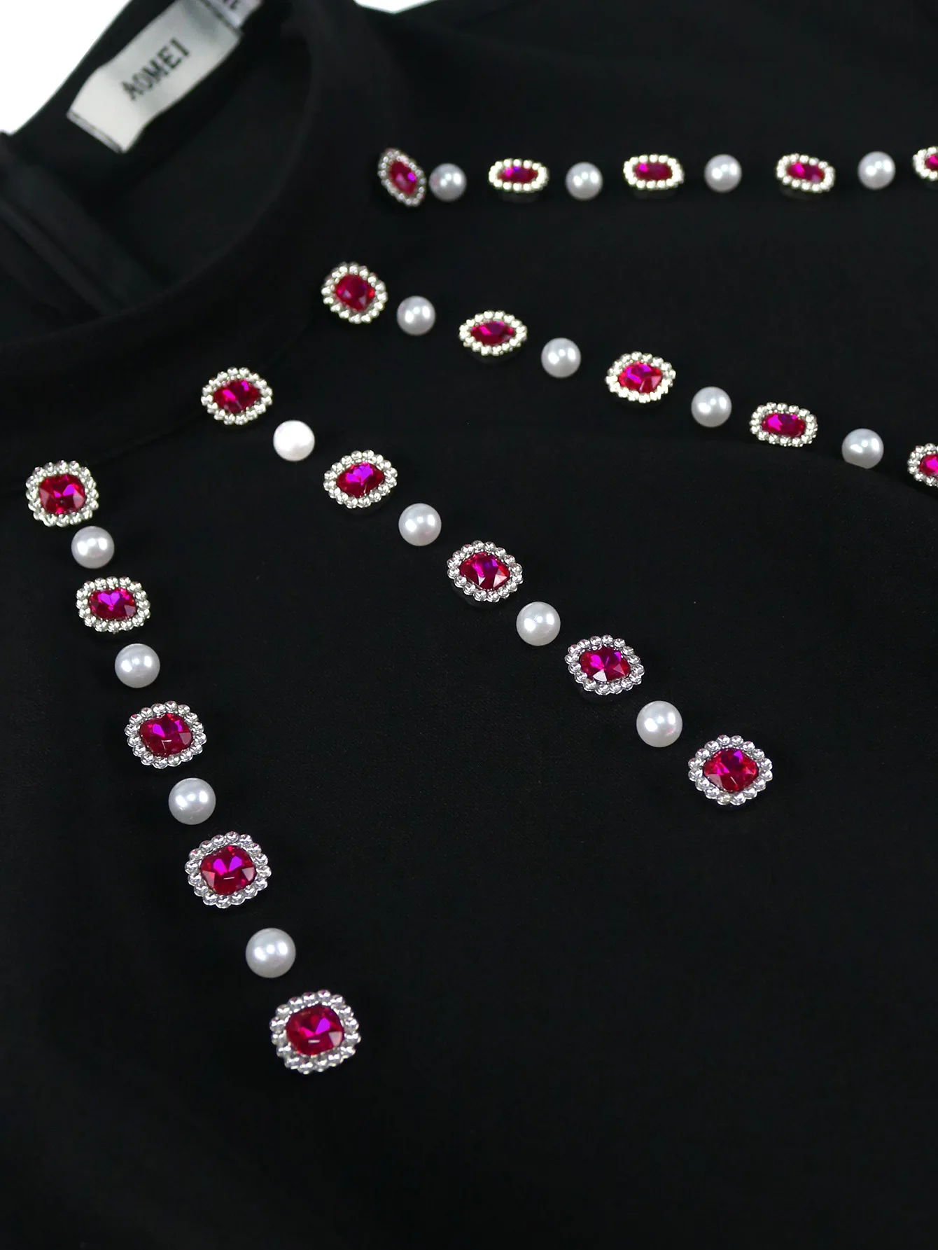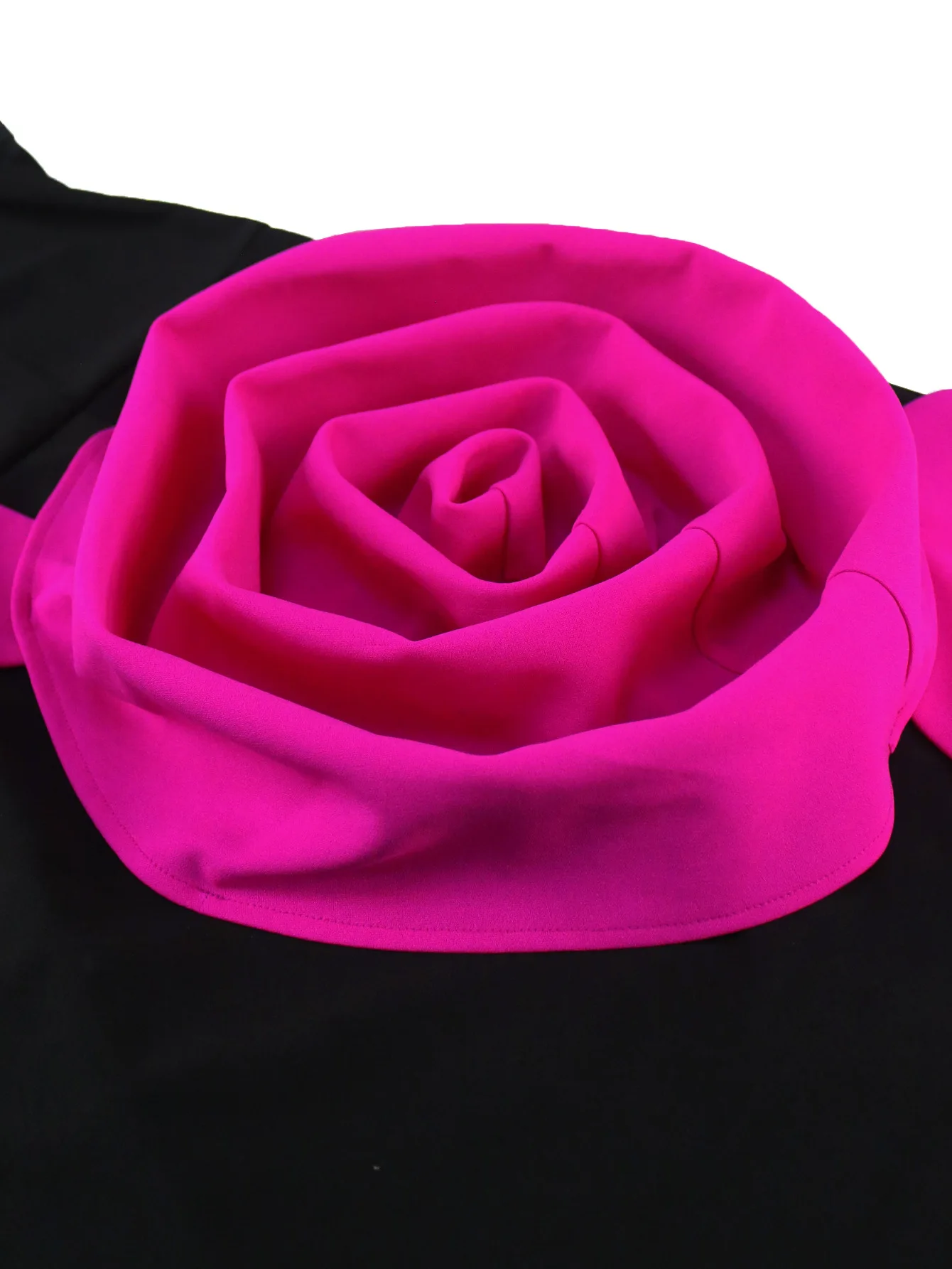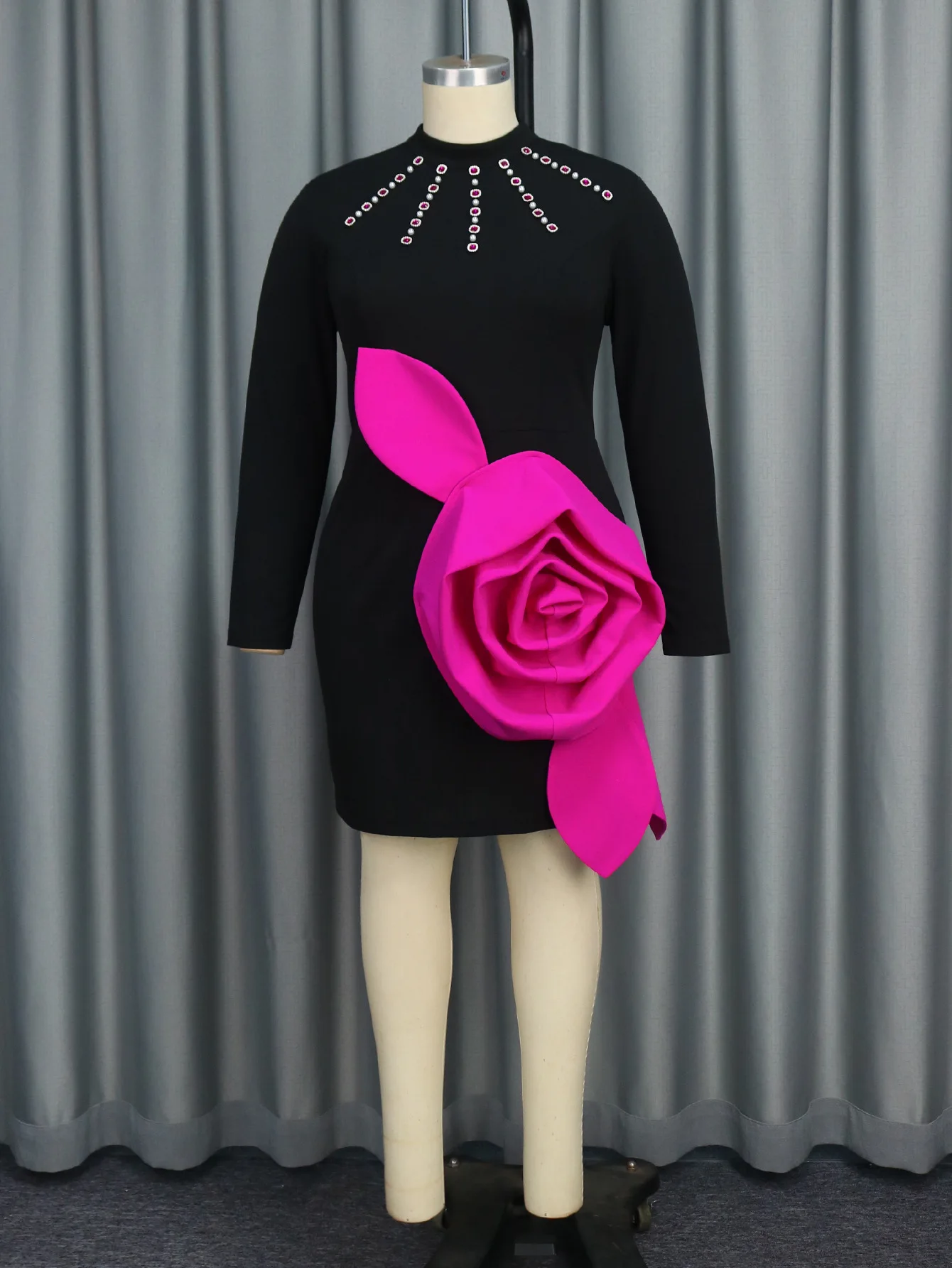 Women Evening Dresses Long Sleeve Rose Flowers Cocktail Elegant Party Dress Fashion Diamond Black Formal Prom Dresses XSY011