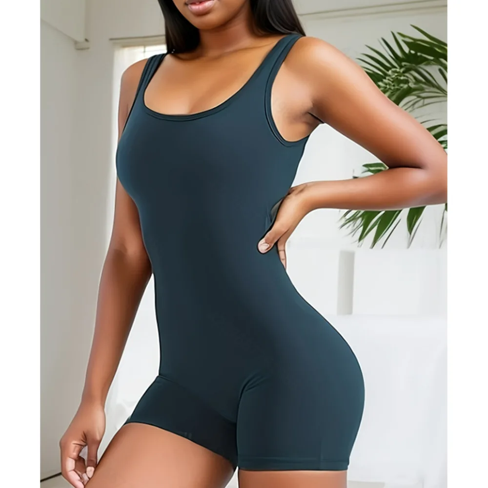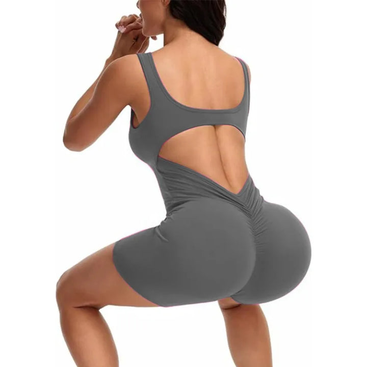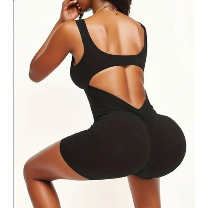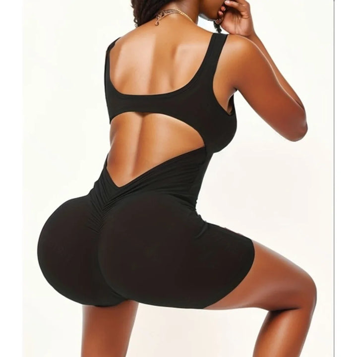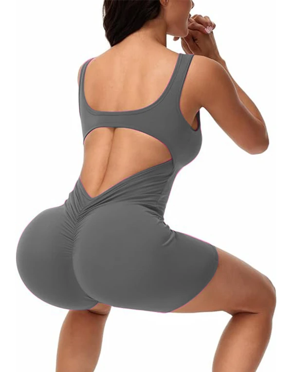 Women Sexy Hollow Out Bodysuit Seamless Square Neck Backless Bodysuit Fitness Yoga Trainning High Elastic Sports Short Bodysuit