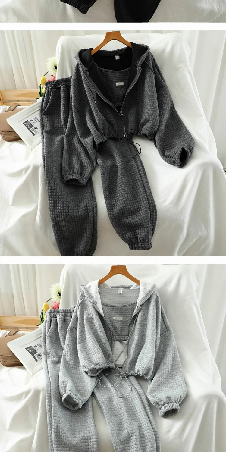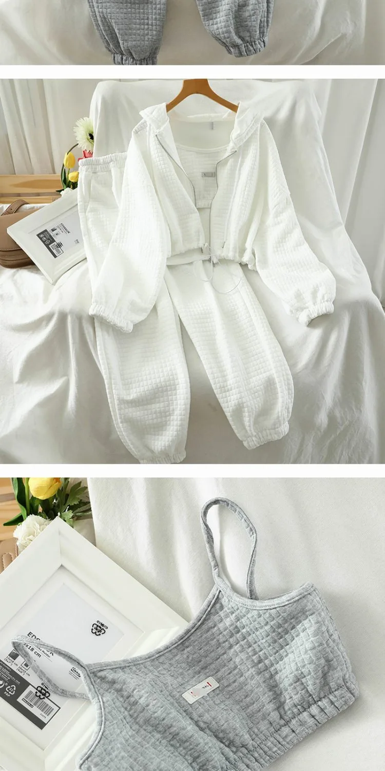 Women's Hooded Sportswear Sports 3 Piece Casual Shirt Pullover Hoodie Pants Set Home Sweatpants Pants Set