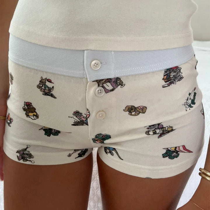 Womens Loungewear Shorts Y2K Vintage Low Waist Button Closure Graphic Printed Aesthetic Slim Pajama Bottoms Sleepwear