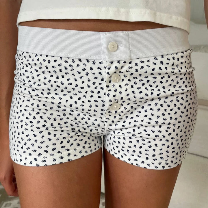 Women Loungewear Shorts, Low Waist Button Closure Printed Slim Pajama Shorts Sleepwear