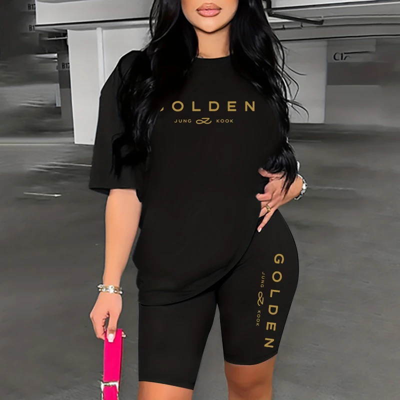 Womens Outfits Summer Printing T-shirt Short 2 Piece Set Casual Outfits Travel Jogging Clothing Daily Sports Woman Short Suit