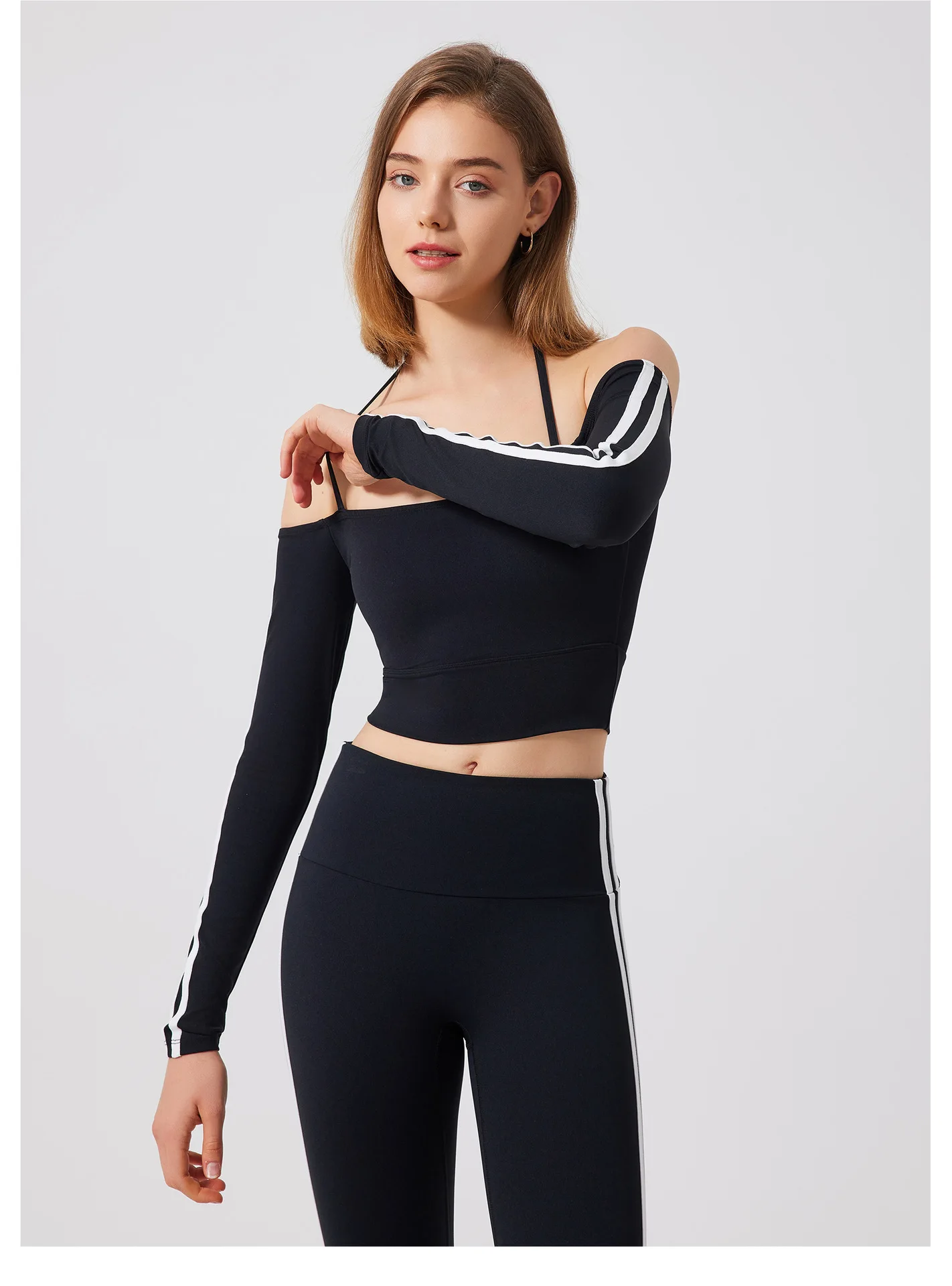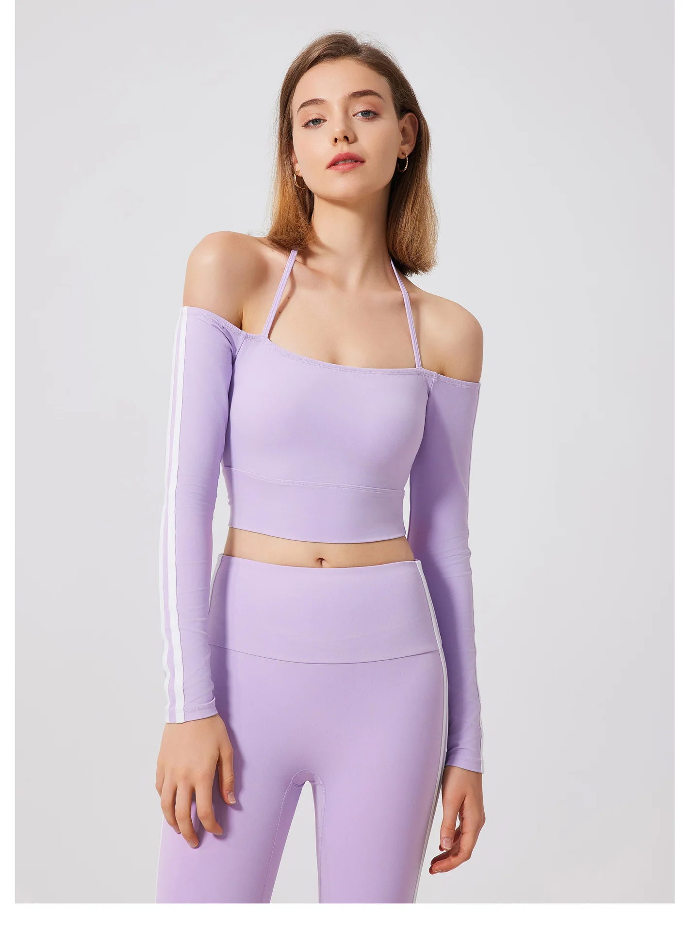 Yoga Tops for Women Long Sleeve Workout Shirts Gym T-shirts Off Shoulder Jogging Tights Activewear